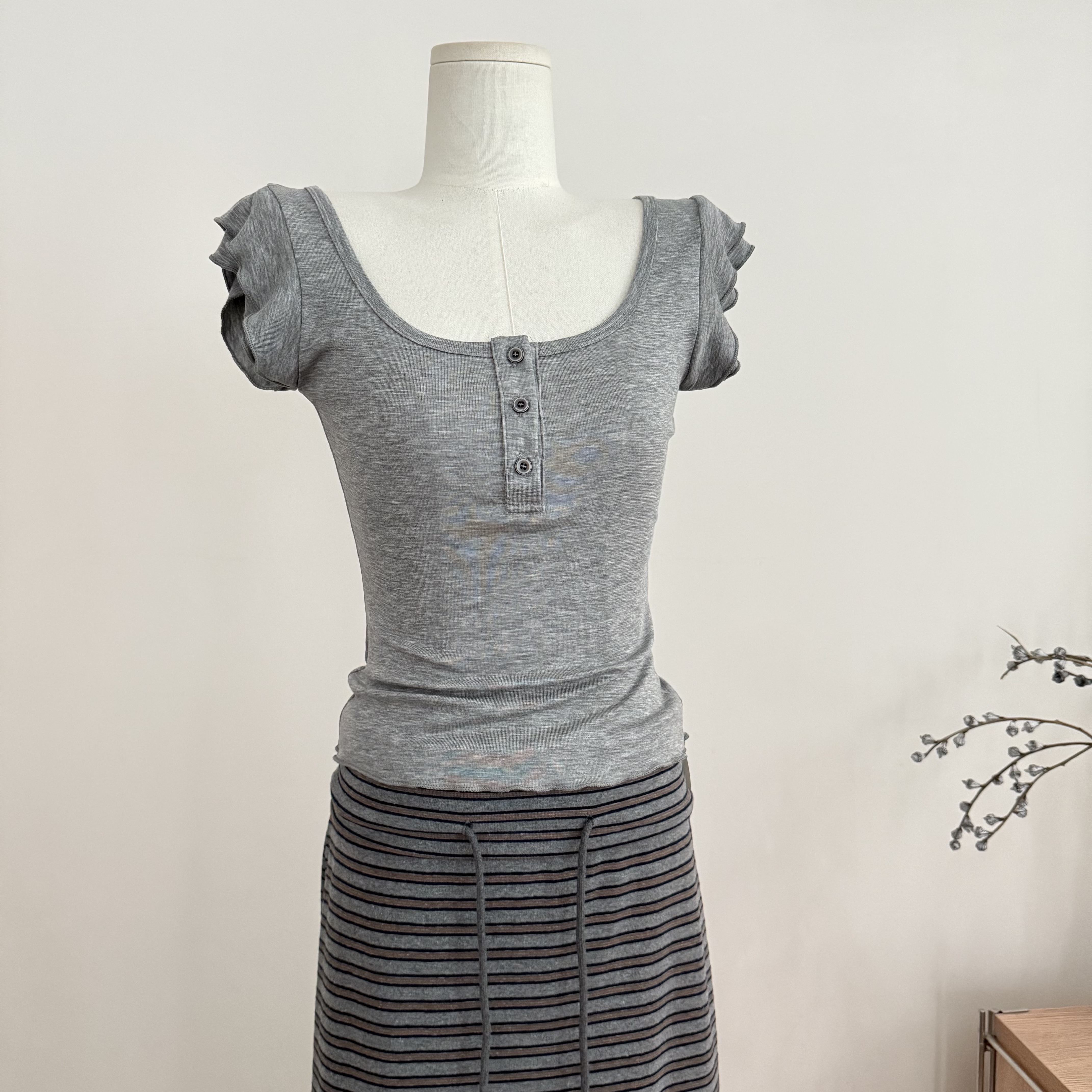 큰 병 맞춤 빛 산소 우유 미끄러짐 세트 그룹 높음 폭탄 몸매 가꾸기 반팔 티셔츠 매우 표지 배 넓적 다리 하이웨이스트 롱 스커트 세트 여성