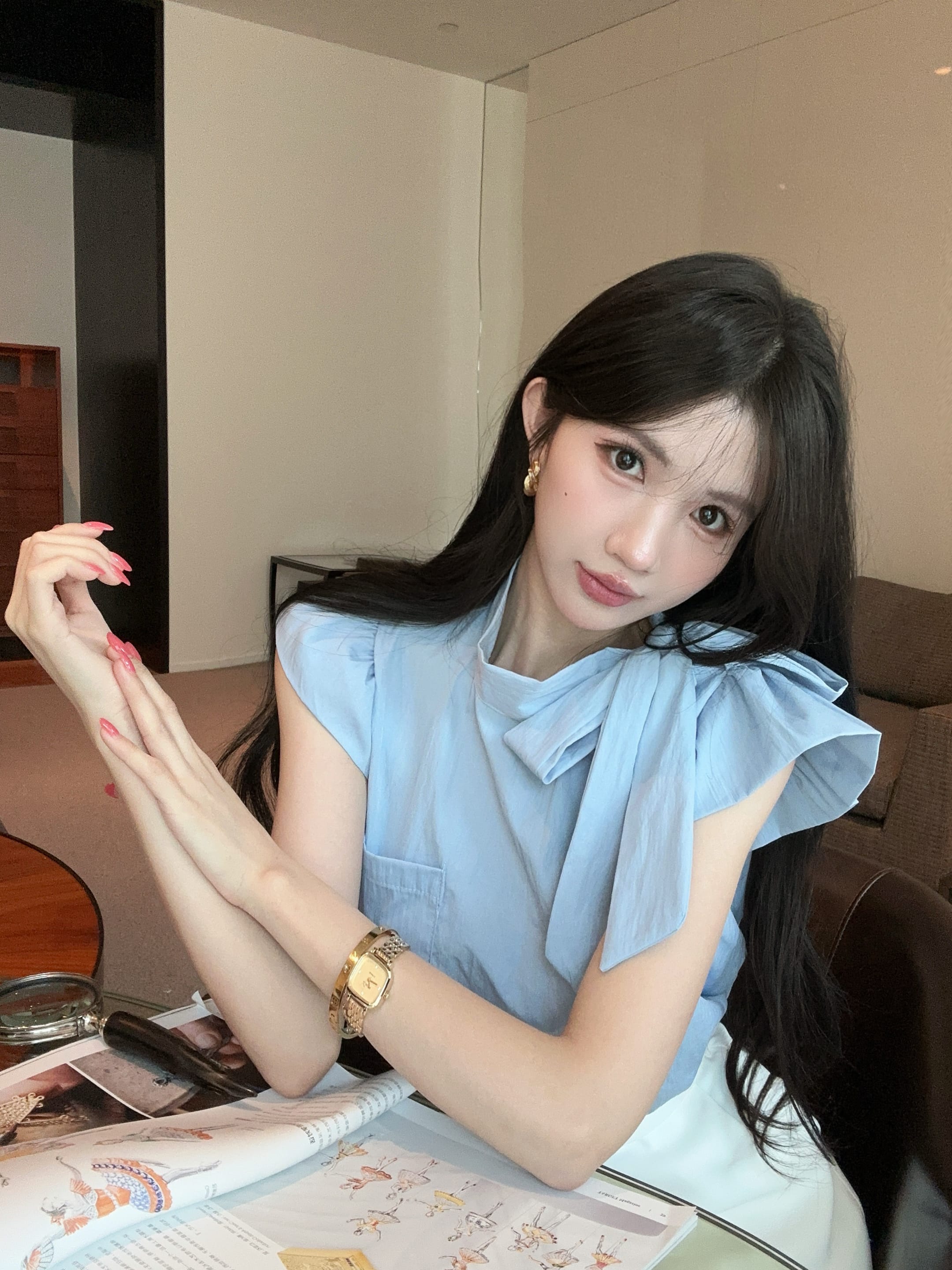 실사 정가 2026 봄 새로운 스트랩 가슴 패드 슬림해 보이는 긴팔 폴로 칼라 오픈 가디건 슬립 투피스 슈트 여성