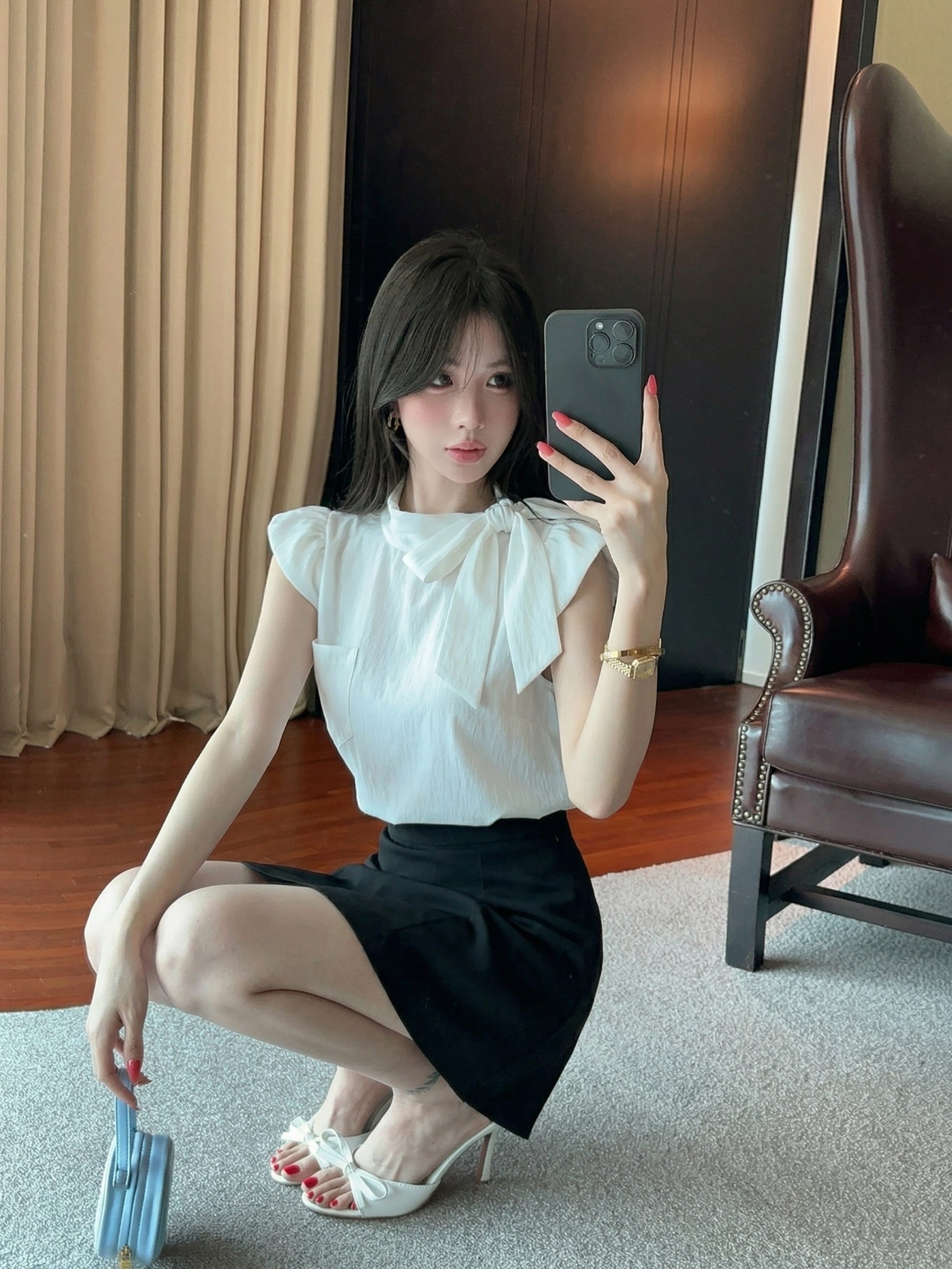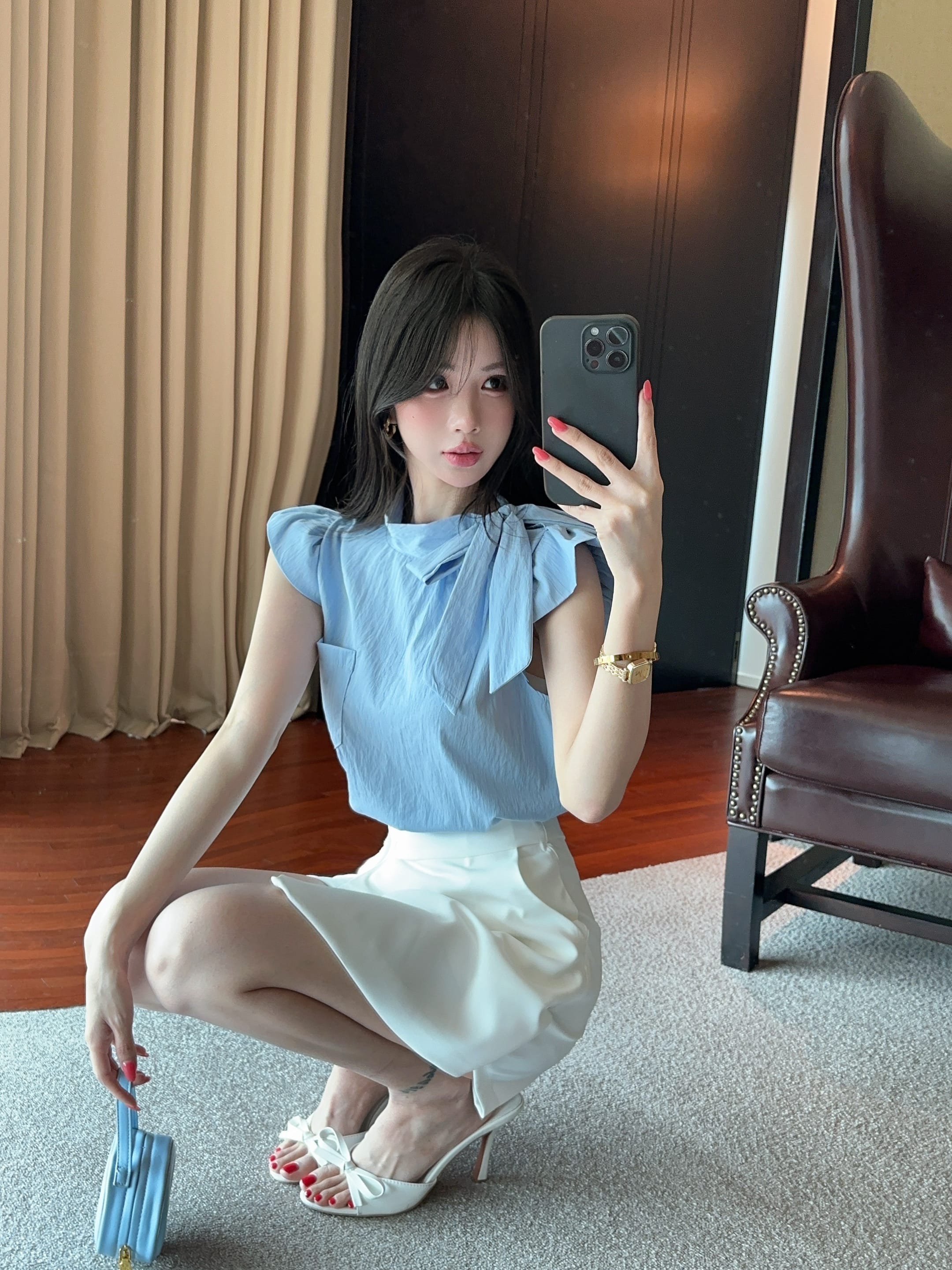실사 정가 얇은 스타일 마이크로 ~을 통해 태양 보호 셔츠 순수한 욕망 레이스 측면 캐미솔 펌프 로프 반신 스커트 세 조각 세트