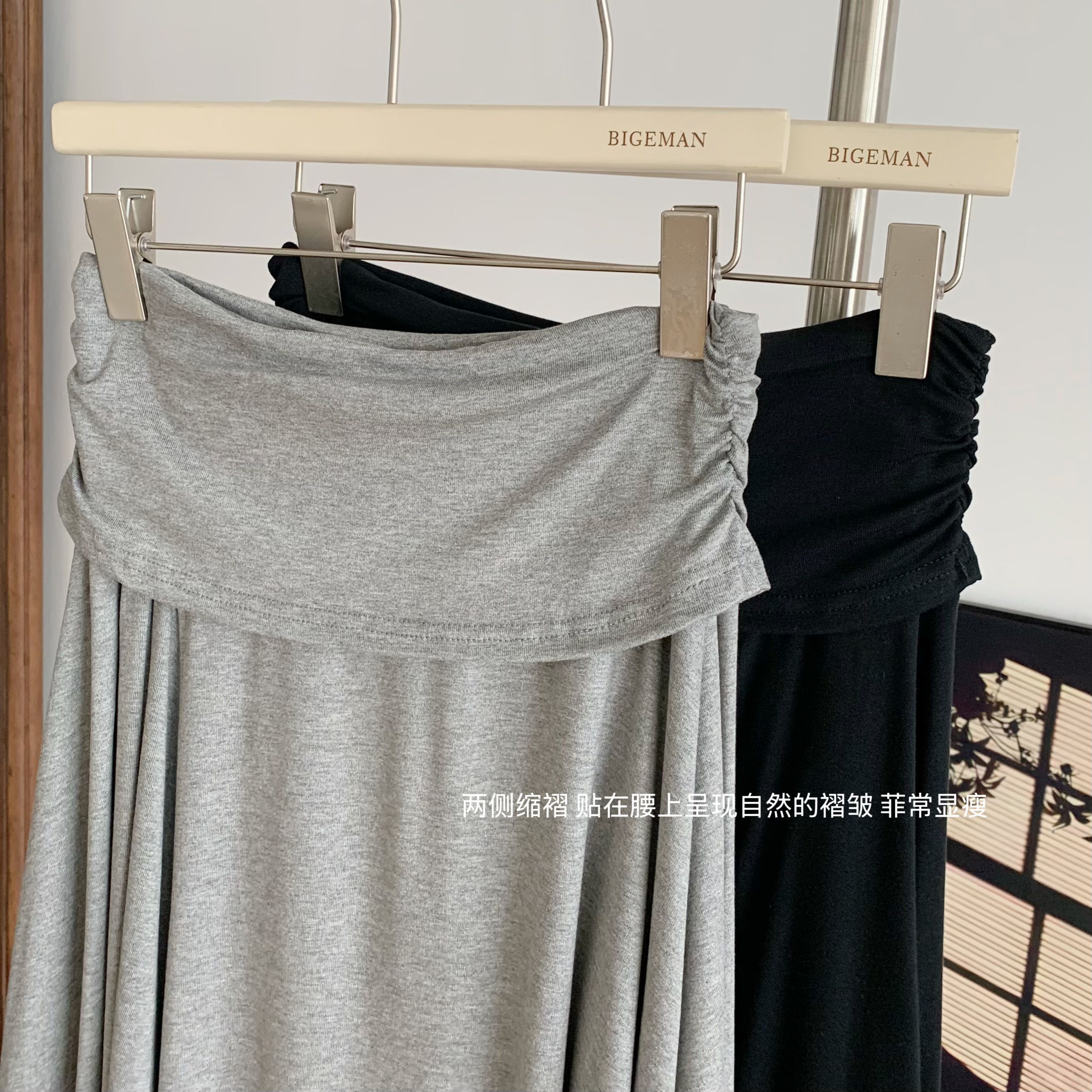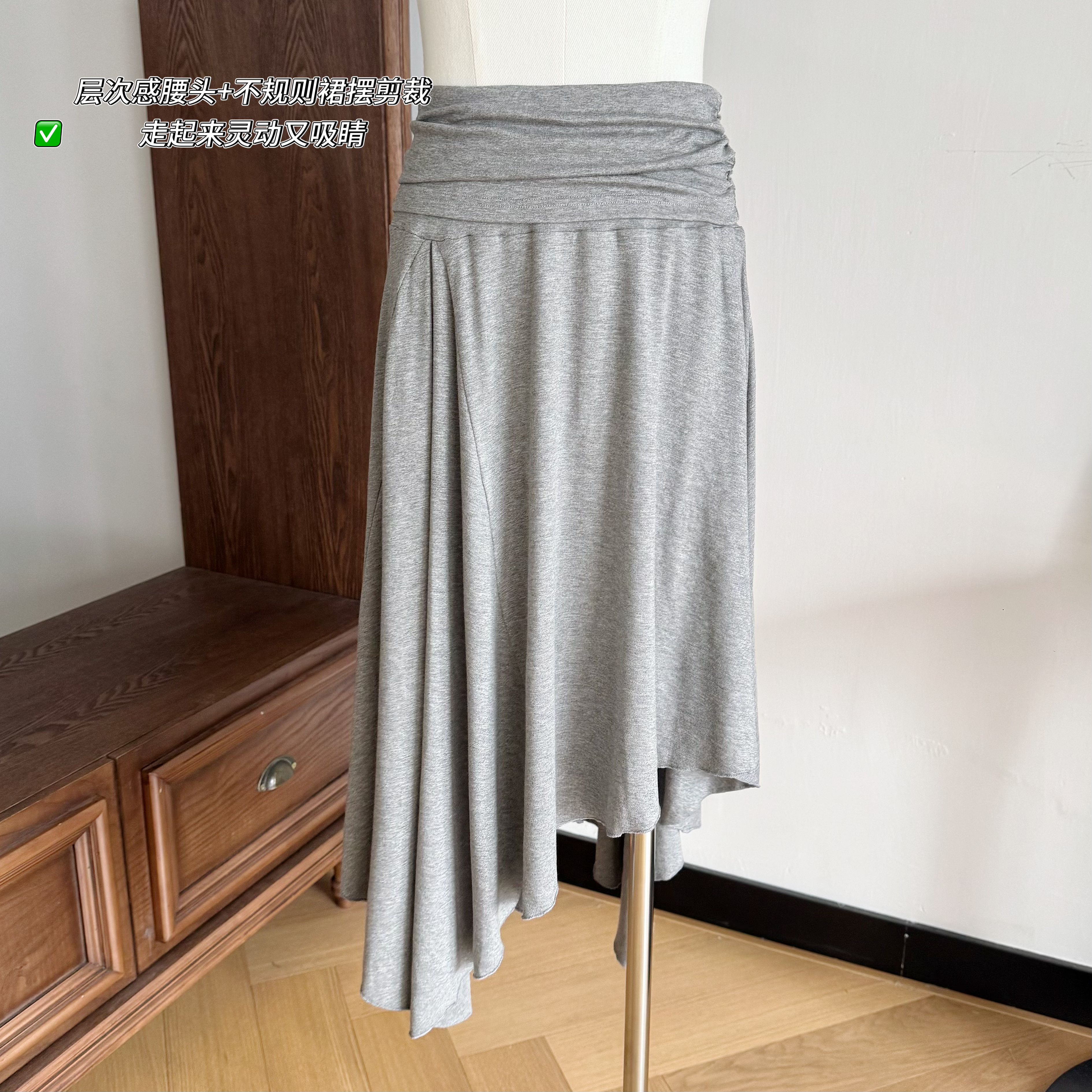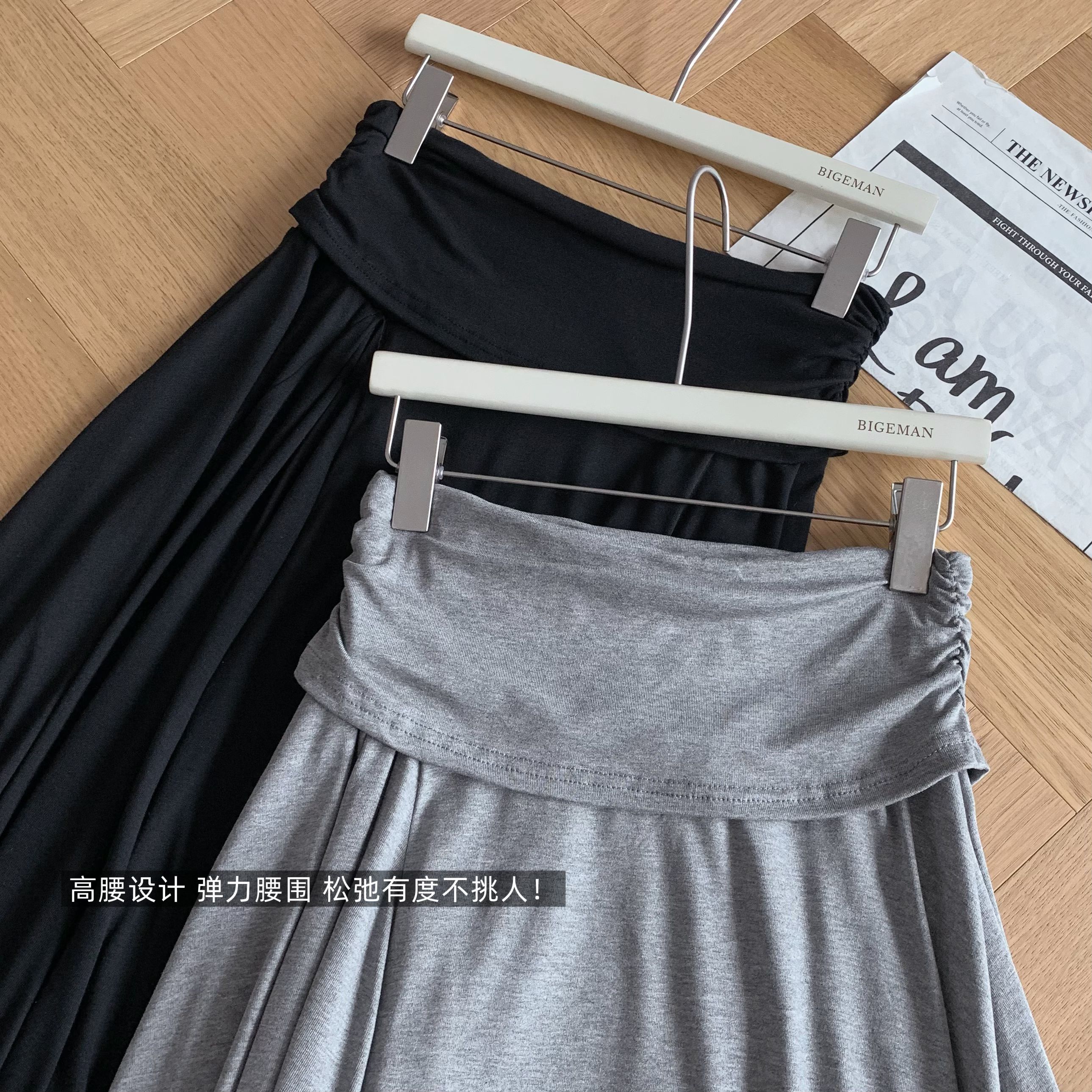 프랑스식 새틴 아세트산 반신 스커트 여성 여름 중간 길이 허리밴드 슬림해 보이는 타이트 스커트 트임 A라인 스커트 여성