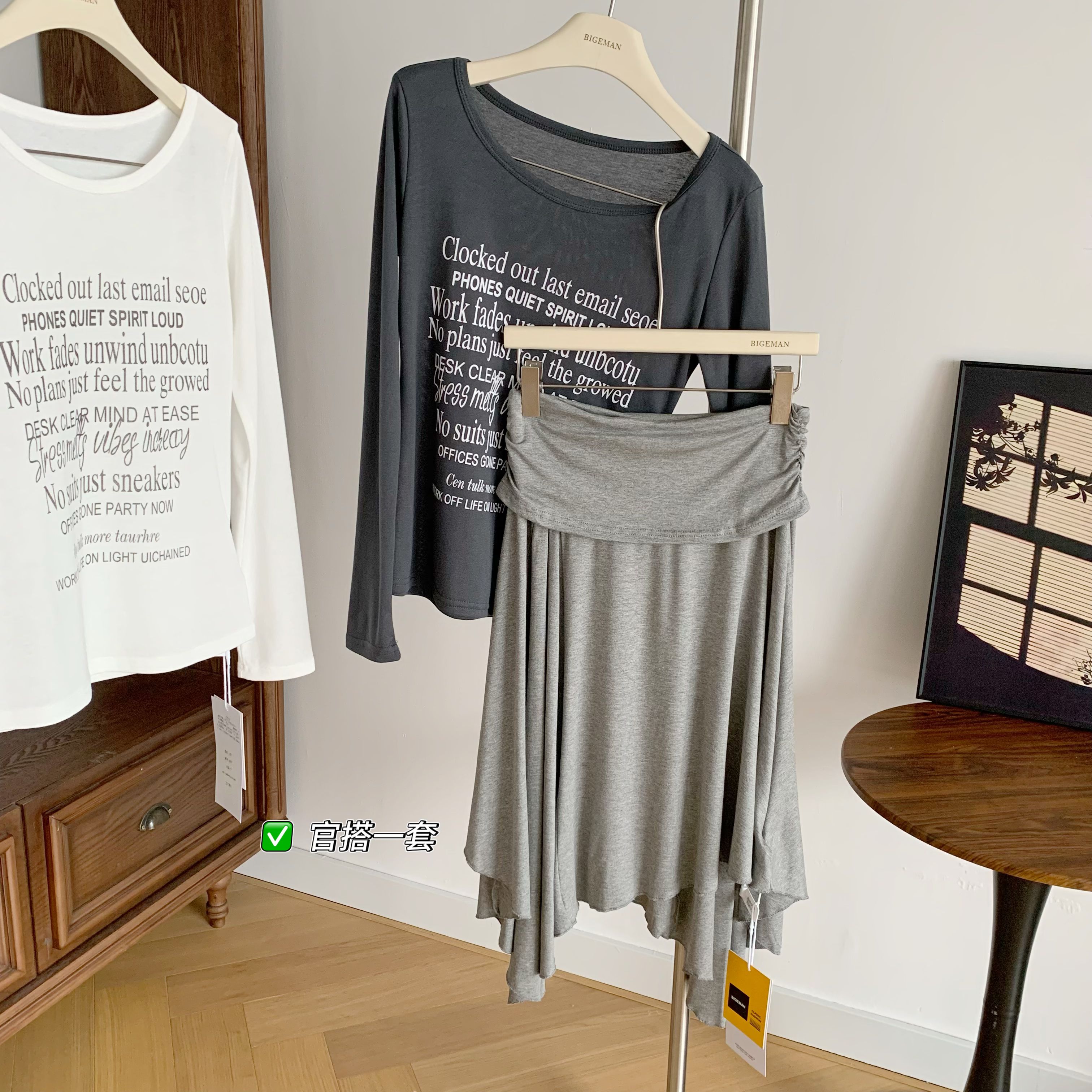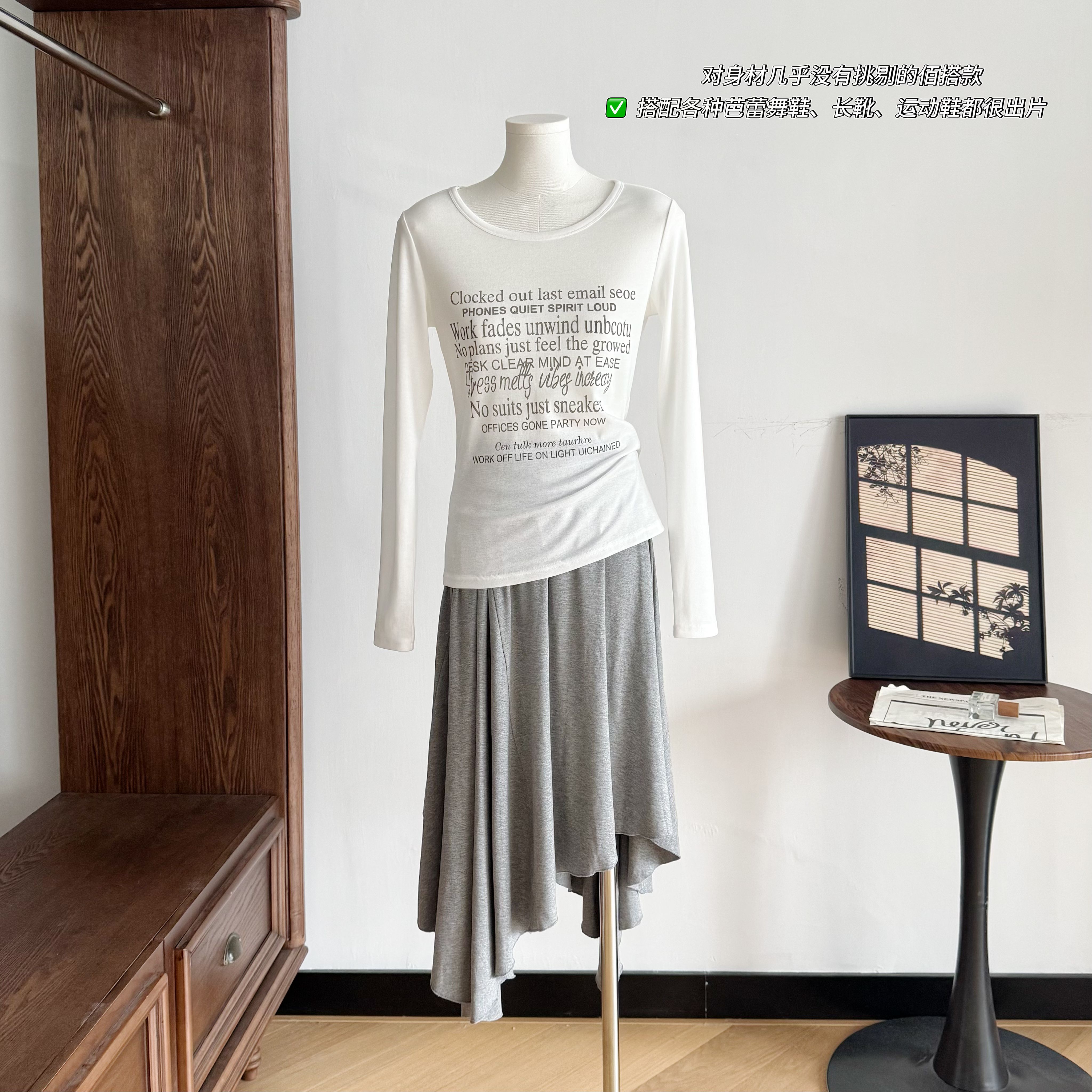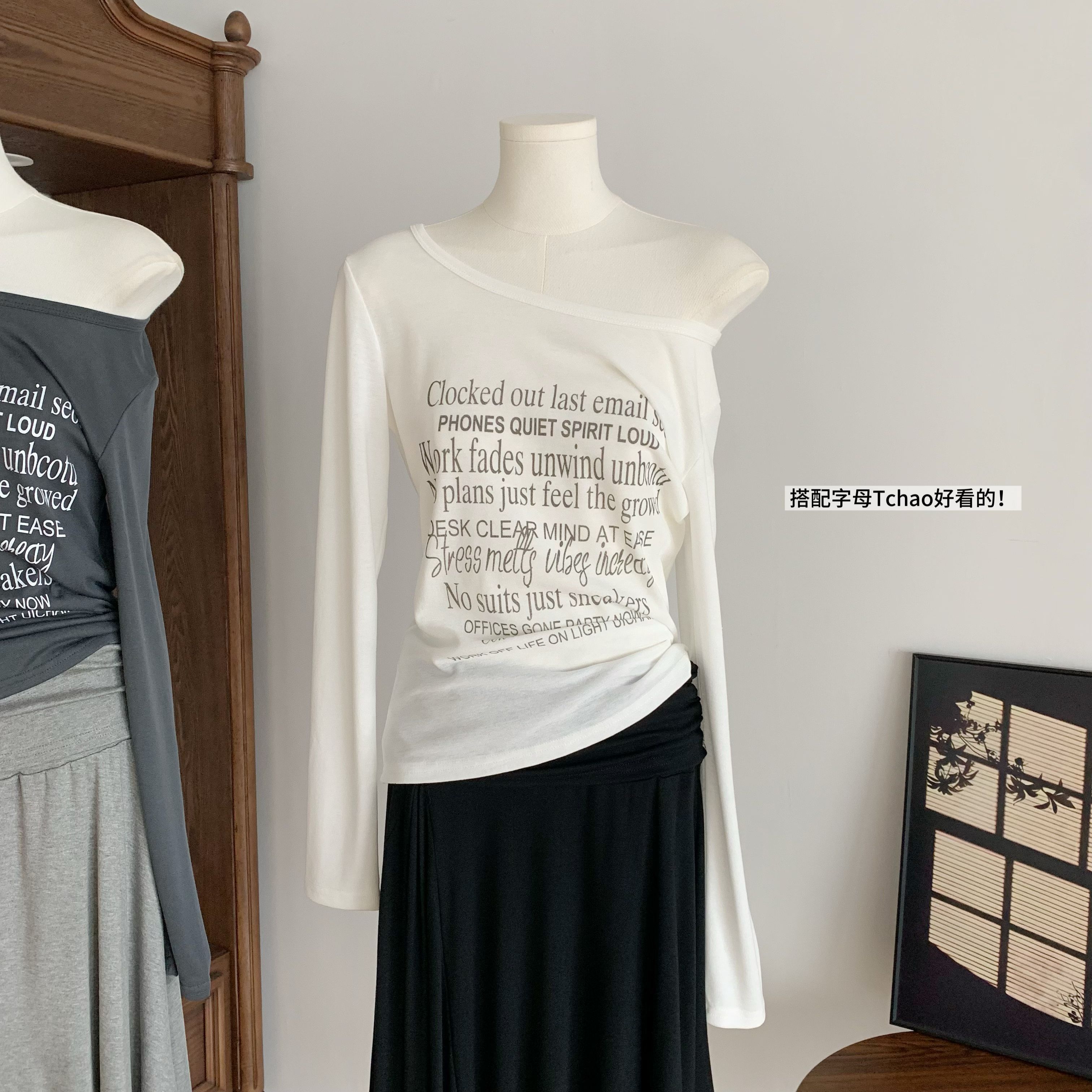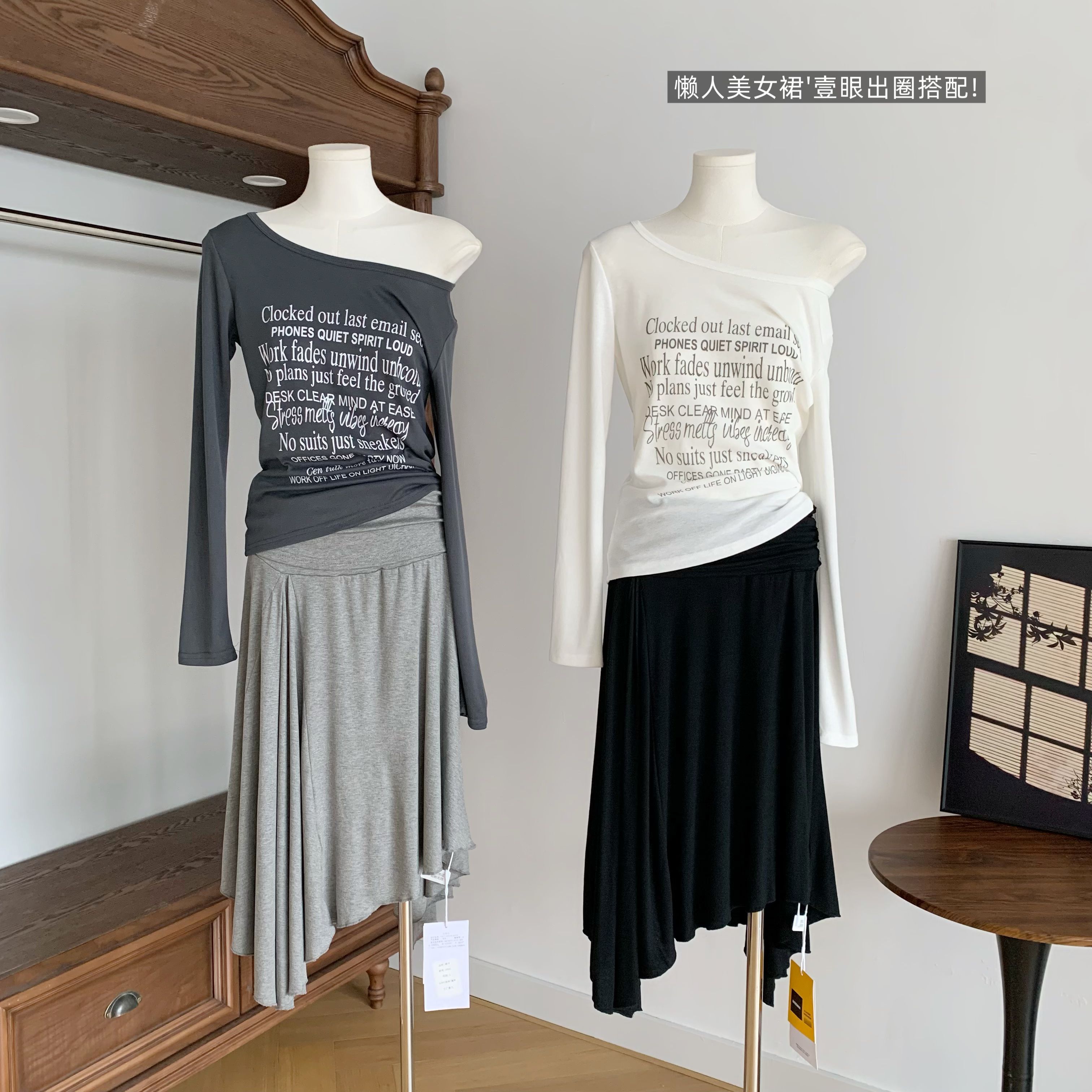 만약 언어 맞춤 순수한 하얀 달빛 순수한 욕망 품격 오프숄더 행침 목 슬립 맨위 반 스커트 니트 투피스 세트