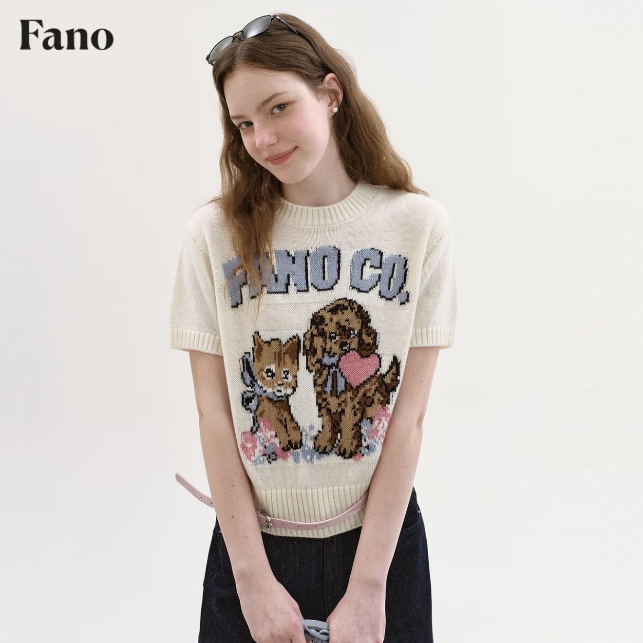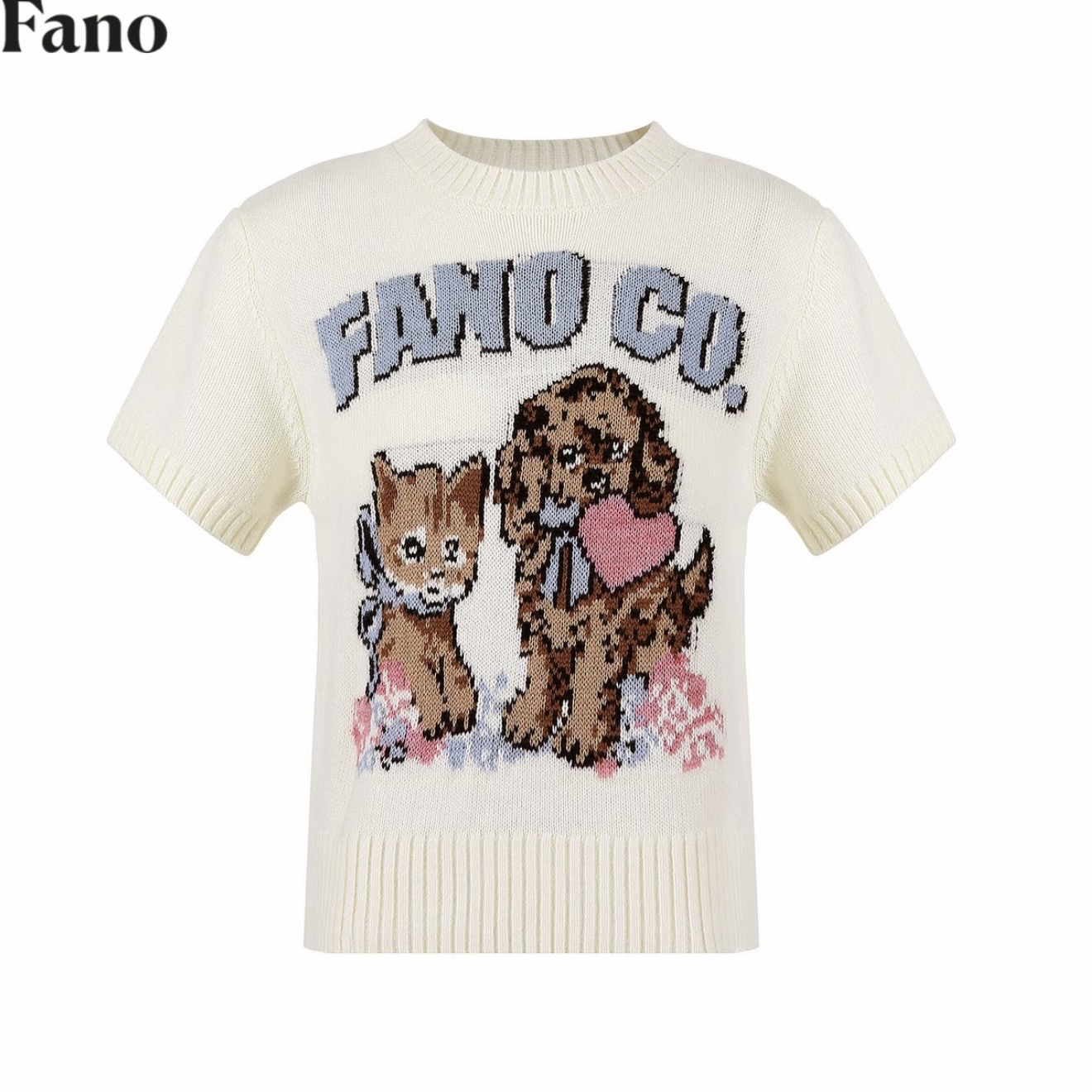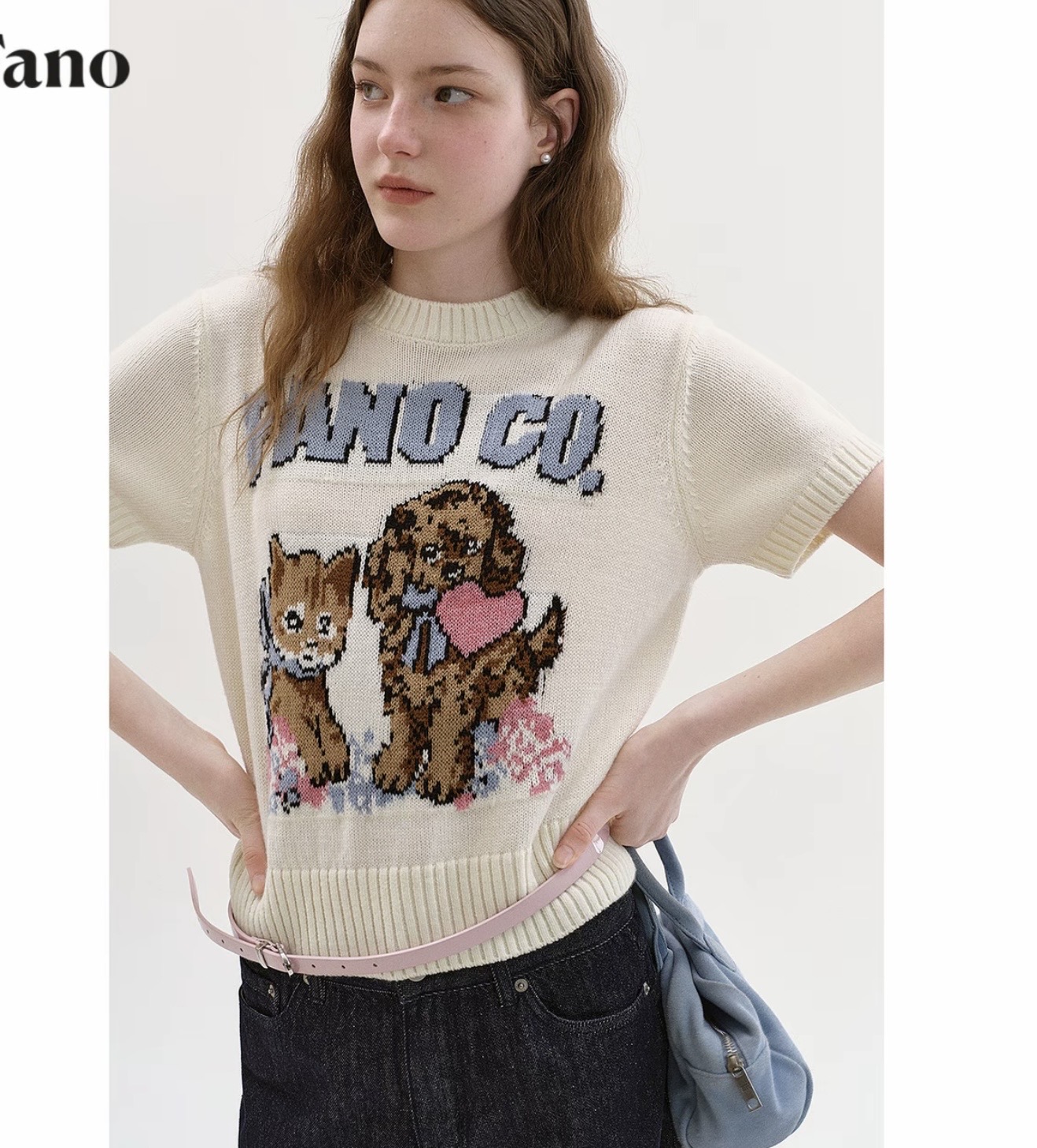 도파민 착용 가져 가라. 고양이 프린트 황색 긍정적 인 어깨 얼음 실크 니트 반팔 티셔츠 여성 여름 몸매 가꾸기 쇼트 스타일 맨위