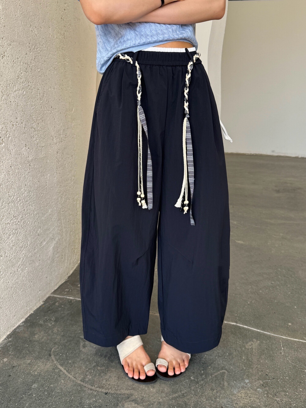 새로운 캐주얼 모통이 칼 바지 여성 한 부서 다용도 하이웨이스트 주름 긴 바지 와이드 레그 팬츠 어린이 포함 벨트