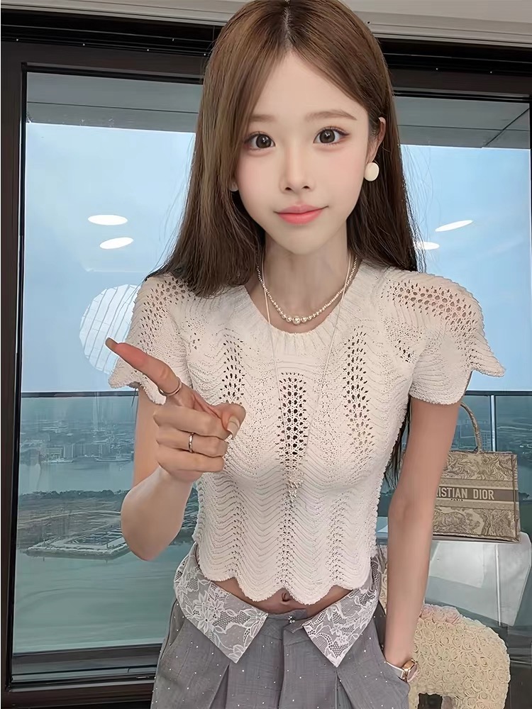 부드럽게 6 월 서클 실 반팔 이른 봄 오리지널 패션 물결무늬 몸매 가꾸기 니트 반팔 맨위 lwj26a1t0201
