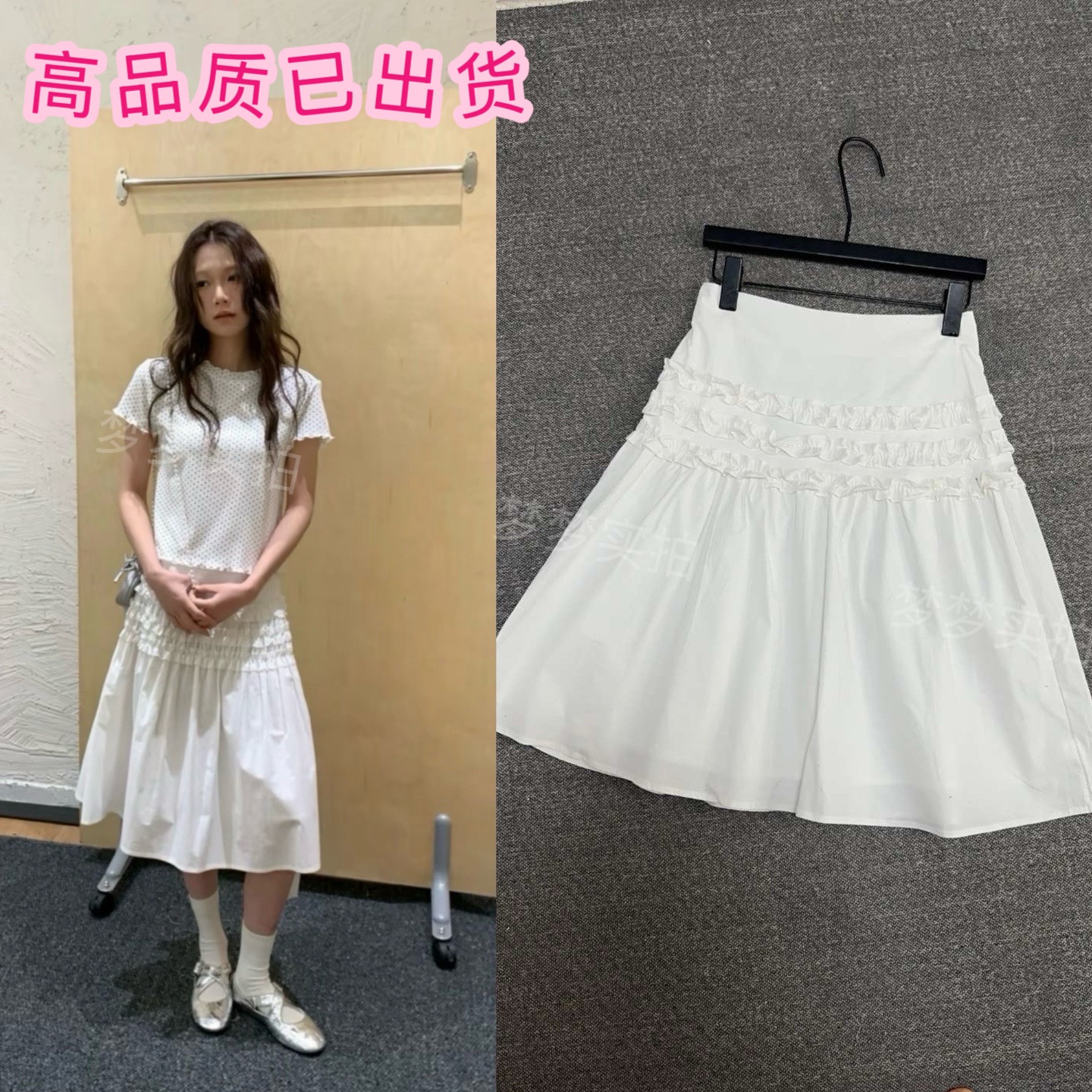 왼쪽 좋은 제나라 2025 여름 새로운 디자인 레이스 주름 반신 스커트 작은 대중 디자인 센스 슬림해 보이는 화이트 미니 스커트