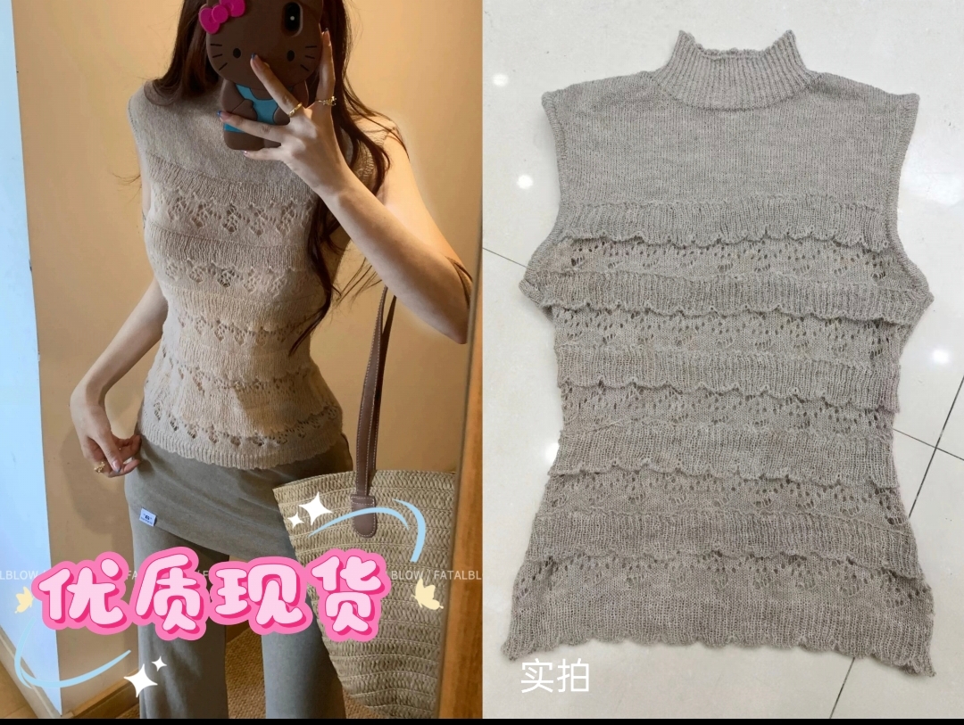 프랑스식 레트로 홀로우 아웃 자수 민소매 니트 스웨터 여성 여름 품격 허리 수축 몸매 가꾸기 슬림해 보이는 쇼트 스타일 조끼 맨위