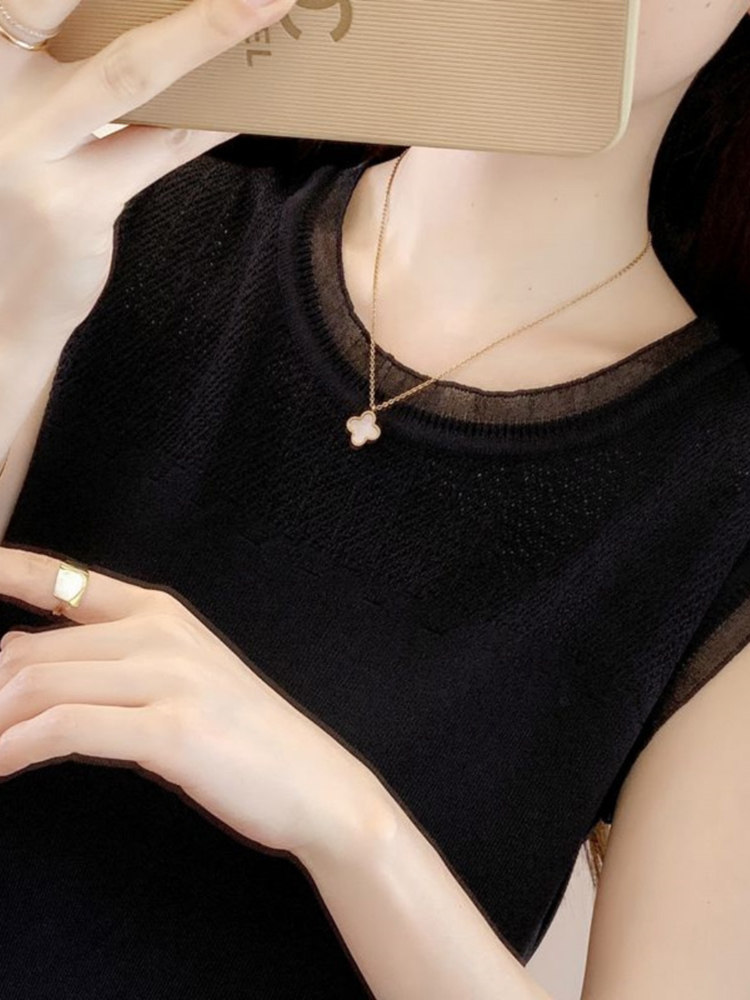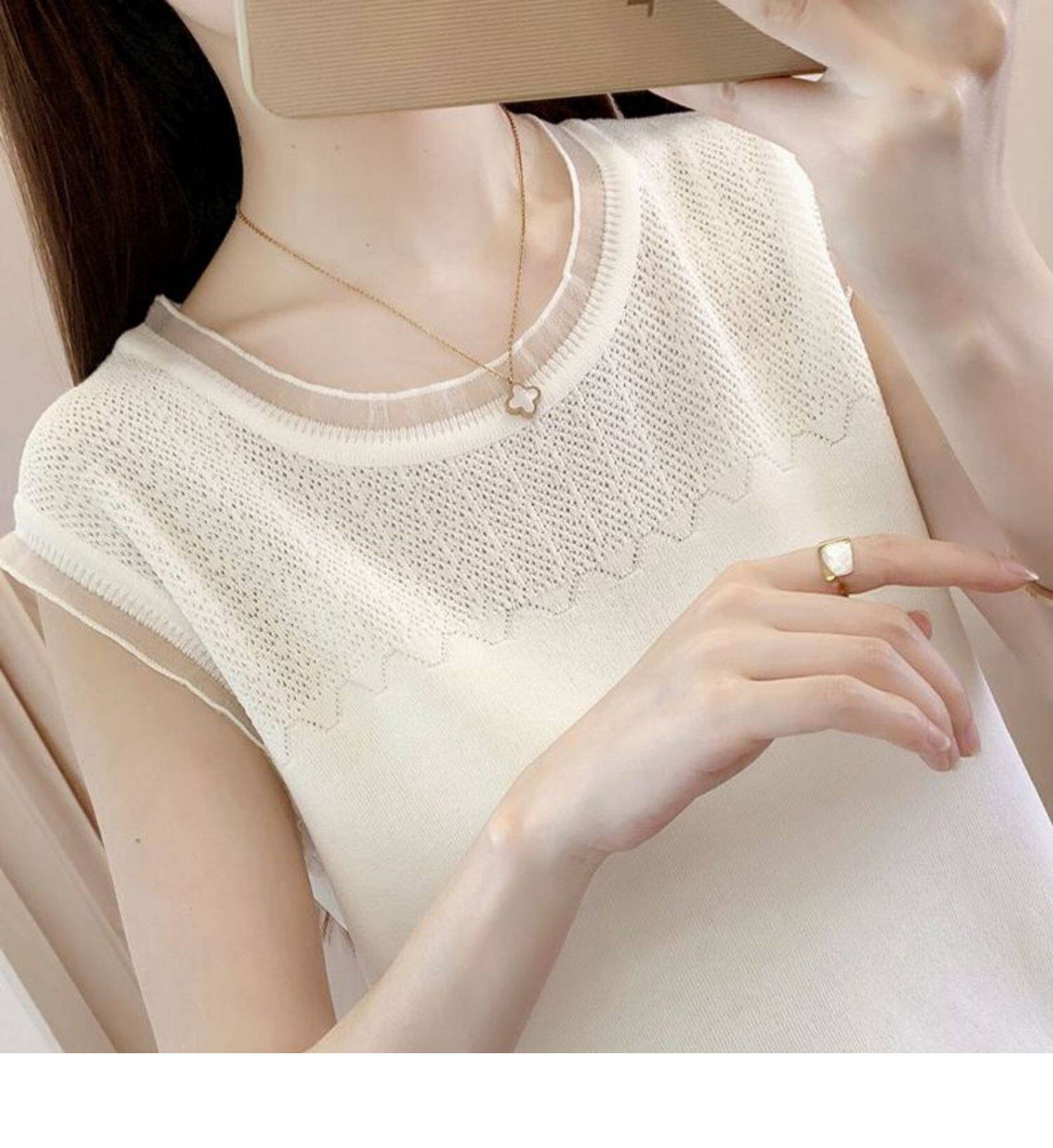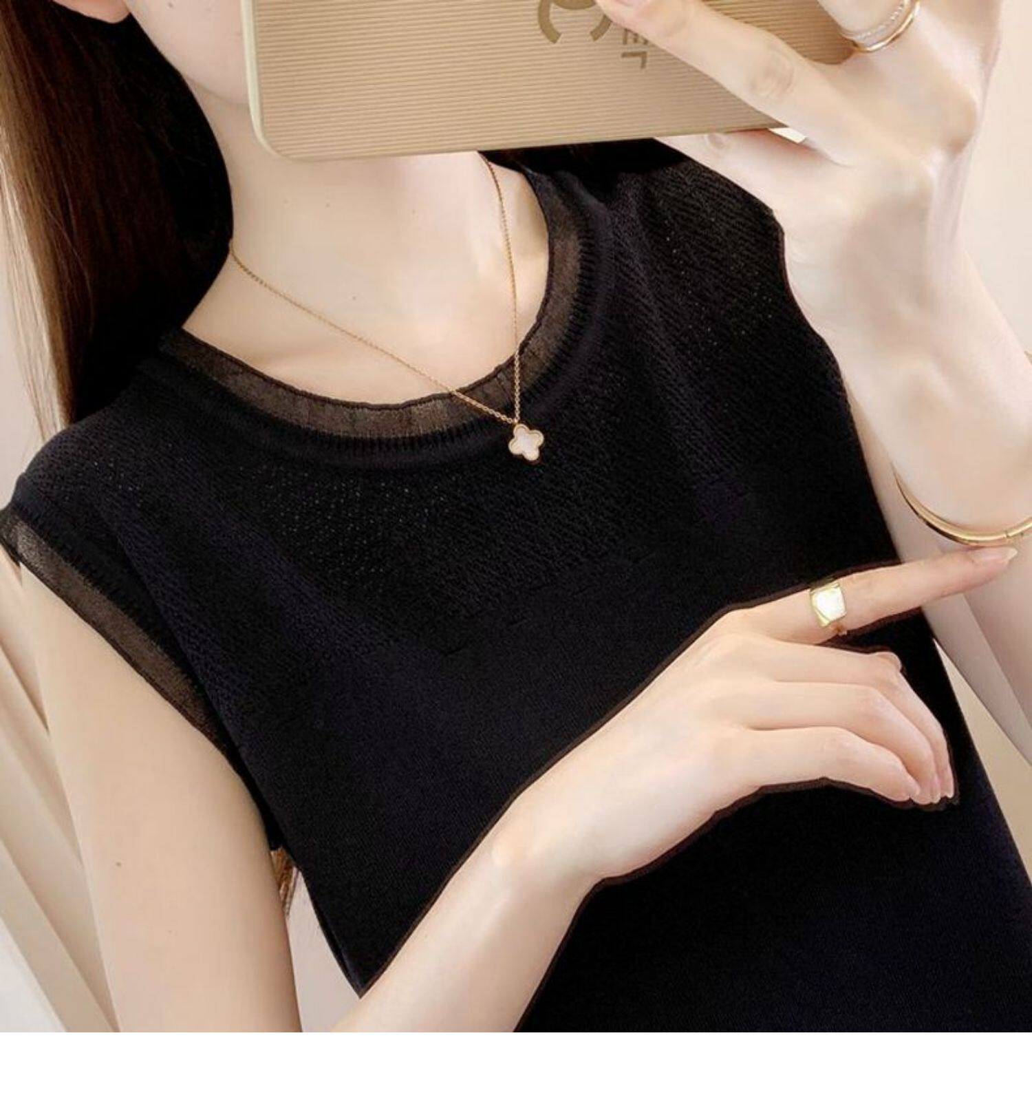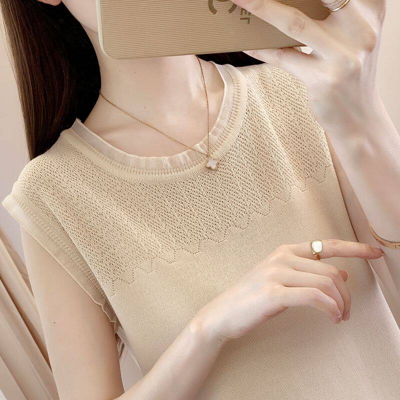 반하이넥 작은 날다 소매 반팔 맨위 여성 이른 봄 잘 생긴 고유 한 아름다운 얇은 스타일 하프 ~을 통해 얼음 실크 니트 기본 셔츠
