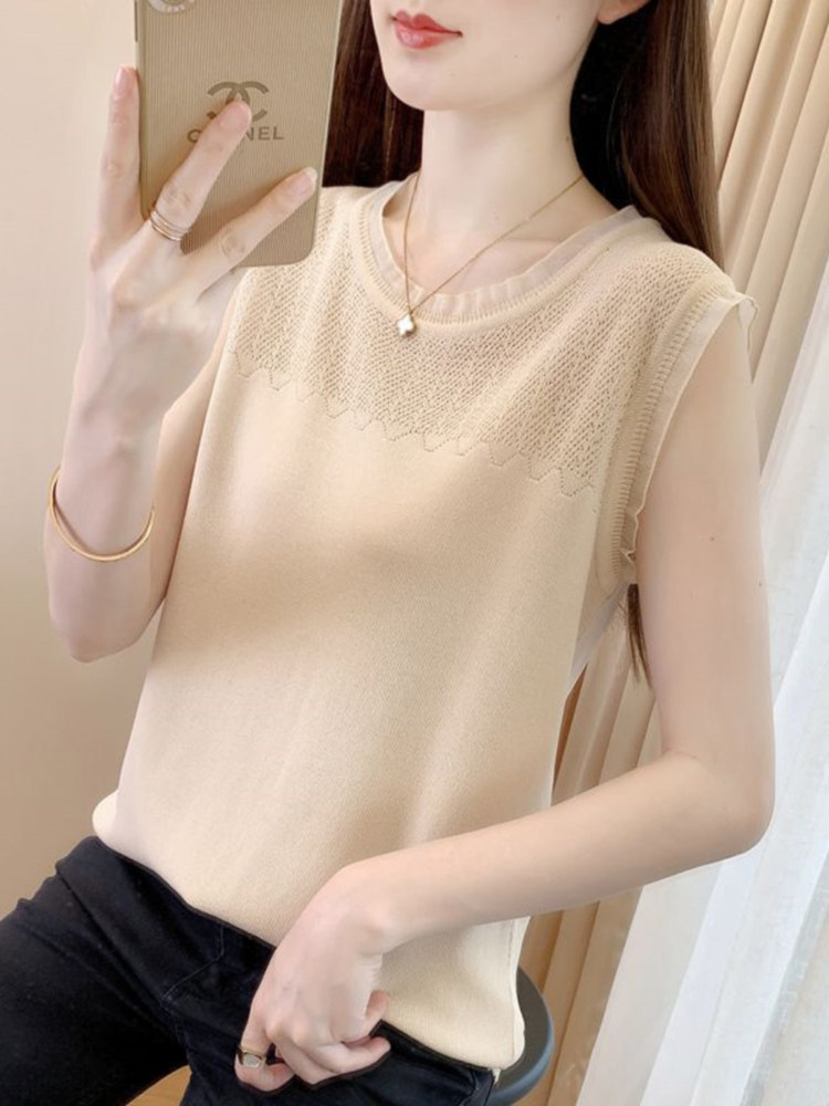 스팽글 홀로우 아웃 외국 가스 니트 스웨터 여성 2026 여름 새로운 반팔 티셔츠 패션 디자인 센스 작은 대중 짧은 맨위