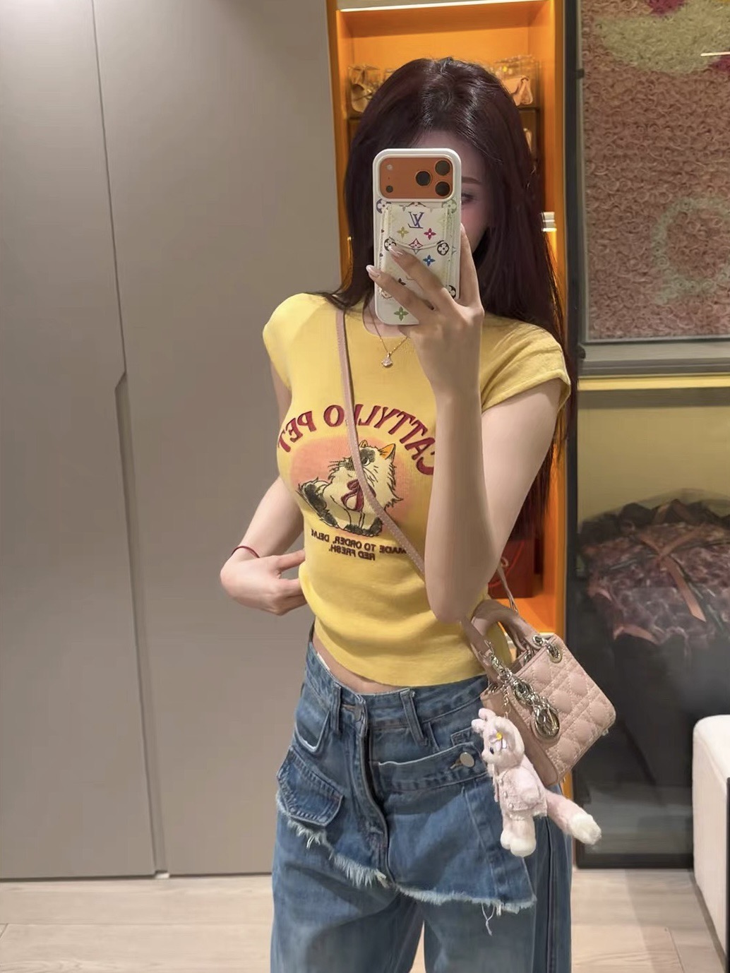 시끄러운 홈 얕은 살구 색상 두꺼운 자수 작은 말 스웨터 여자 2025 겨울 고급 루즈핏 캐주얼 니트 털실 맨위
