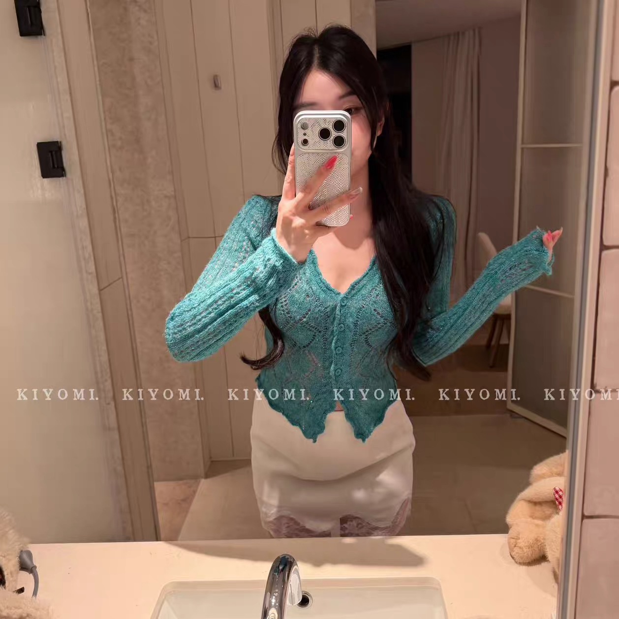 zzhen 제인 제인 매매 봄 하트 홀로우 아웃 V넥 니트 오픈 가디건 봄 새로운 부드러운 다용도 작은 외투