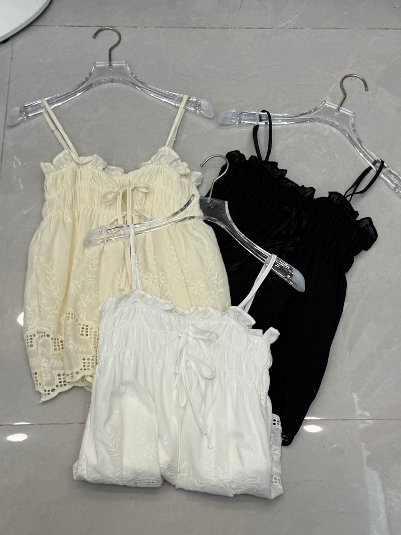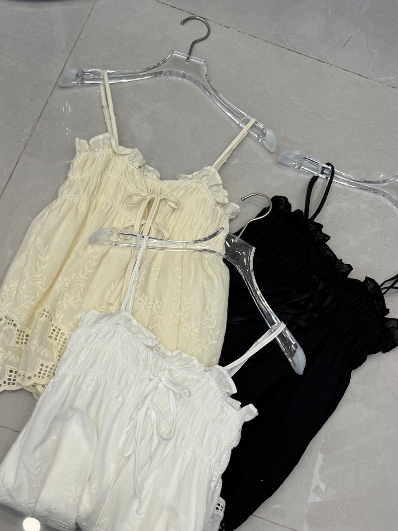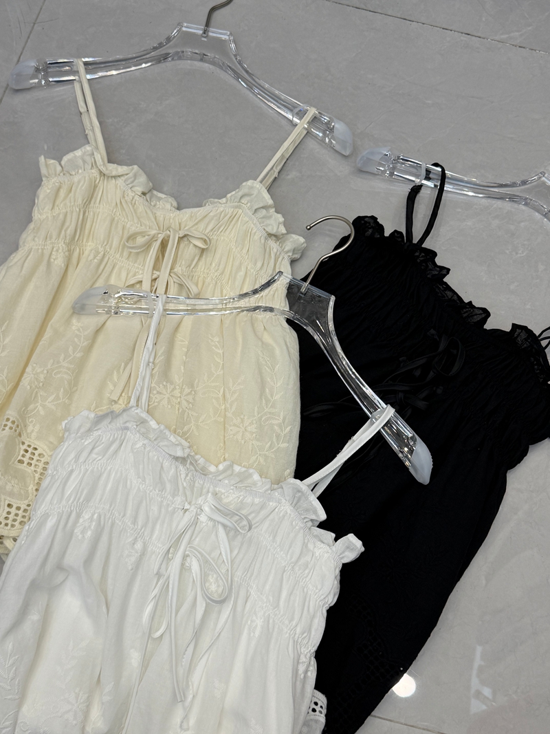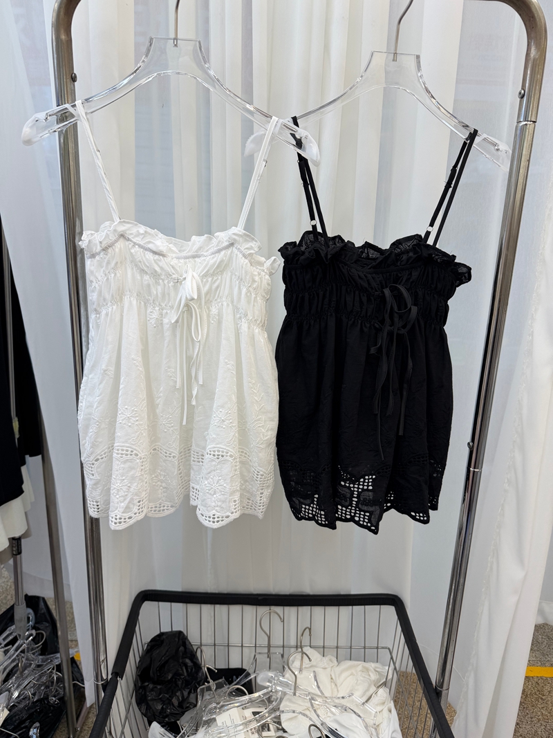 달콤한 스타일 깊은 v 레이스 행침 목 프릴 꽃밭 조끼 여성 스트랩 몸매 가꾸기 슬림해 보이는 맨위