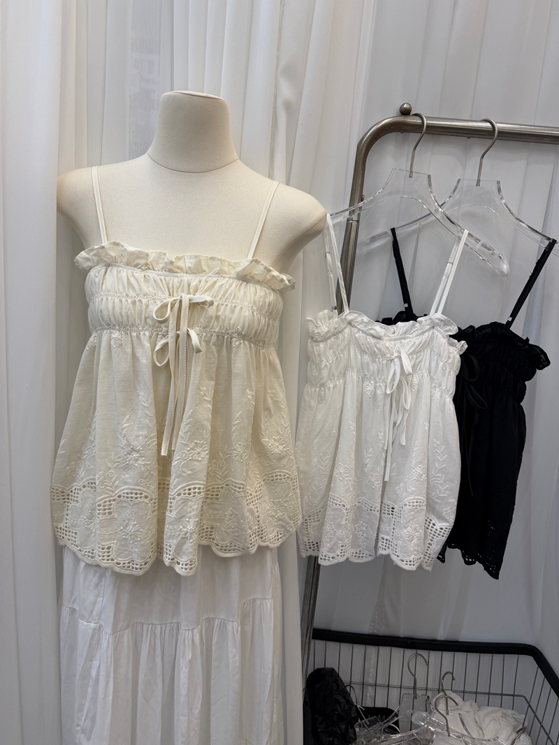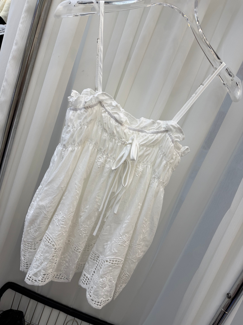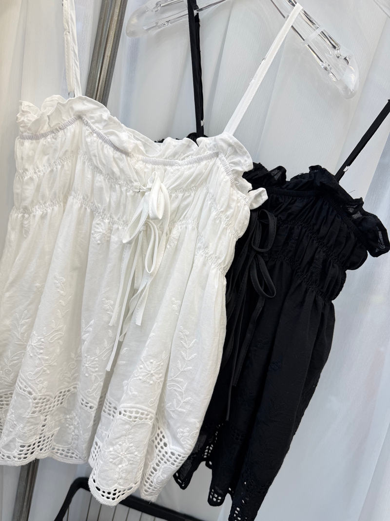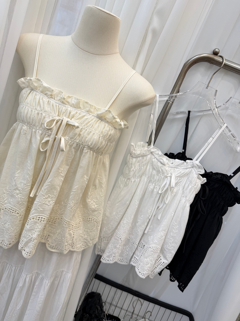 달콤한 스타일 깊은 v 레이스 행침 목 프릴 꽃밭 조끼 여성 스트랩 몸매 가꾸기 슬림해 보이는 맨위