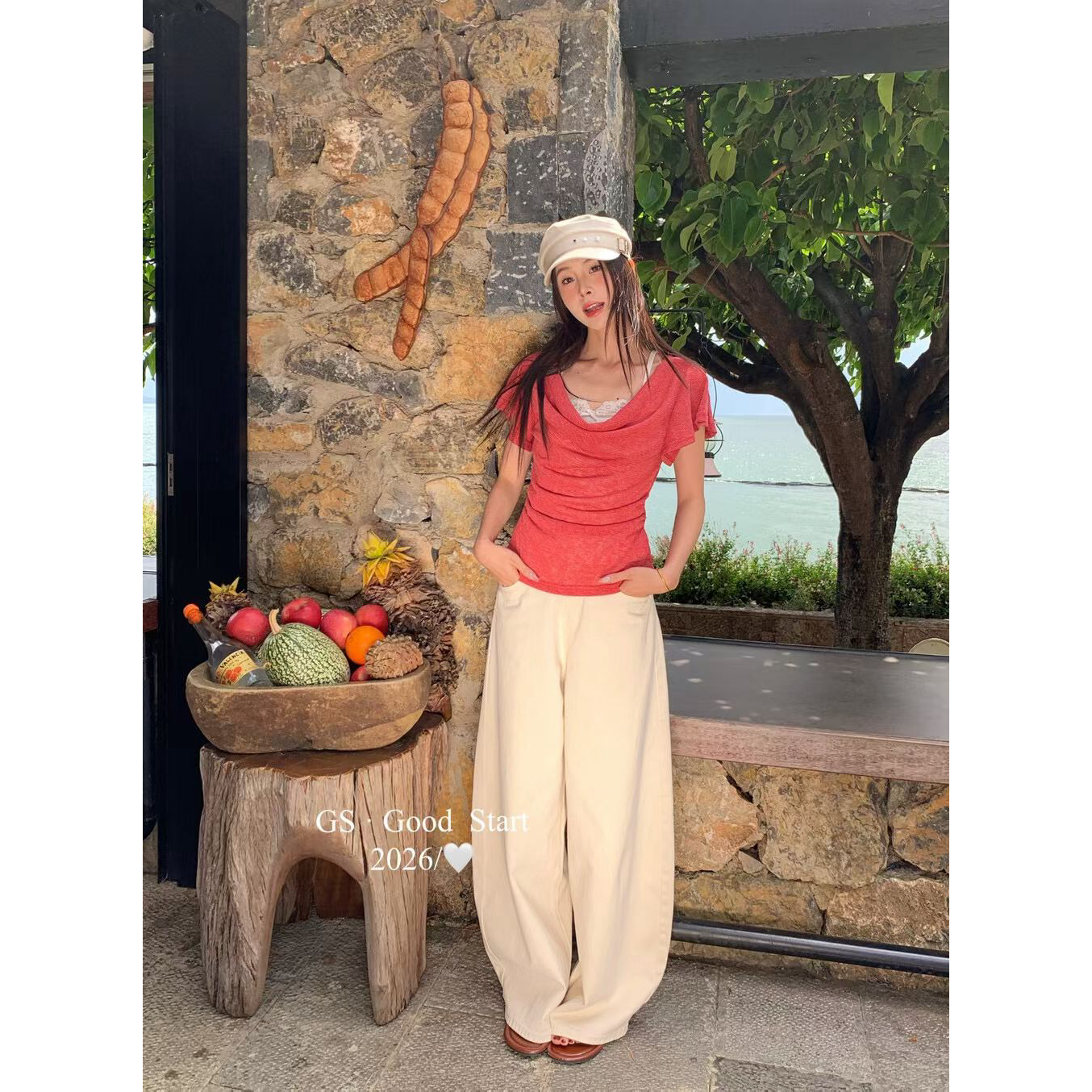 omelet 에그 롤 한 부서 디자인 센스 다용도 레이스업 측면 나비 매듭 8 점 와이드 레그 팬츠 캐주얼 바지