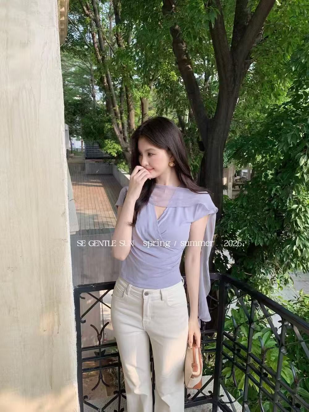 프랑스식 자이언트 잘 생긴 ~ 중 프릴 비스듬한 어깨 의류 여성 2026 년 여름 새로운 쉬폰 작은 셔츠 디자인 센스 작은 대중