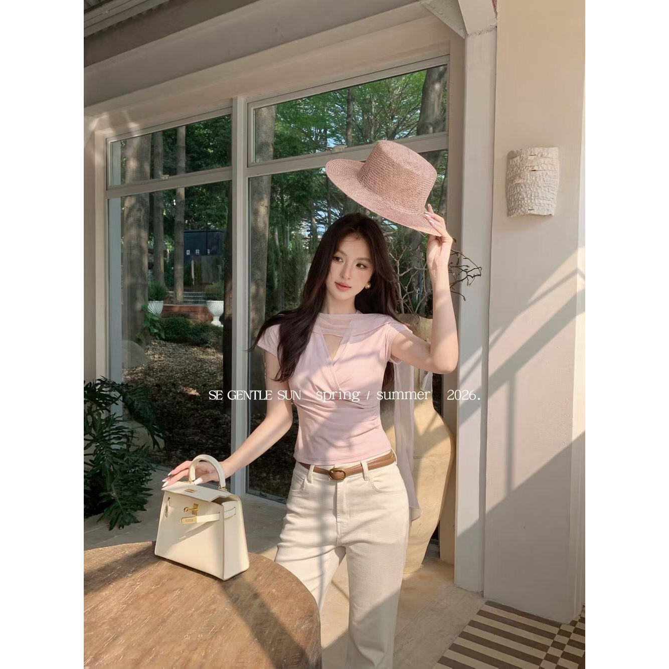 순수한 욕망 바람 레이스 조각 V넥 반팔 티셔츠 여성 여름 새로운 몸매 가꾸기 슬림해 보이는 맨위