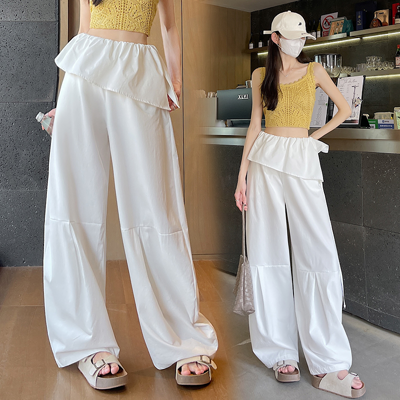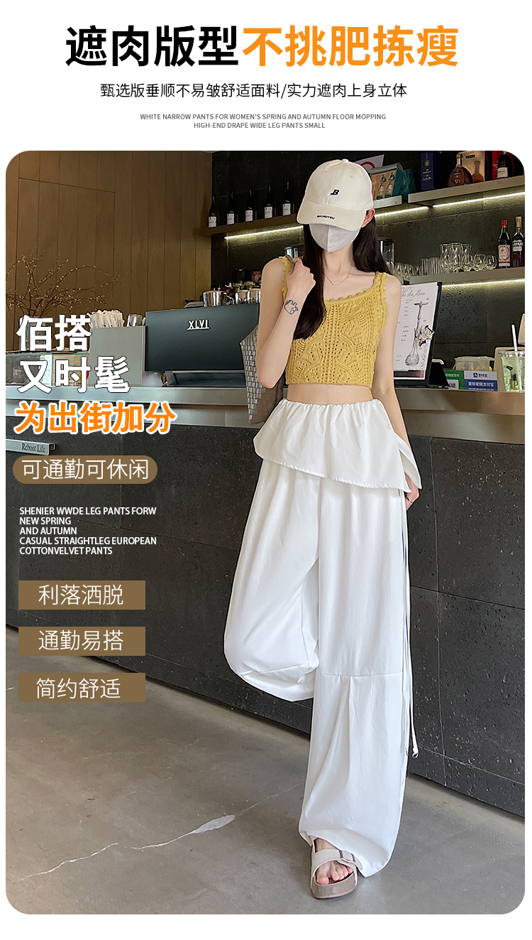 화이트 넓은 다리 정장 여성 2026 봄 여름 새로운 아메리칸 중 하이웨이스트 루즈핏 도루 센스 느슨함 센스 캐주얼 웨이 바지