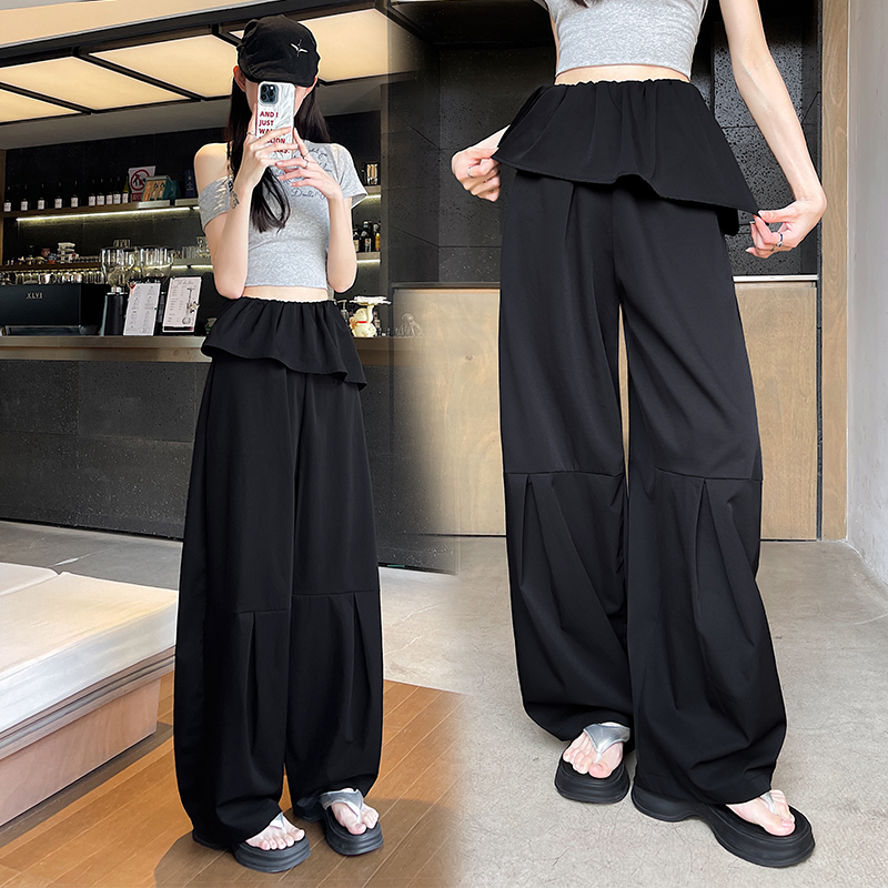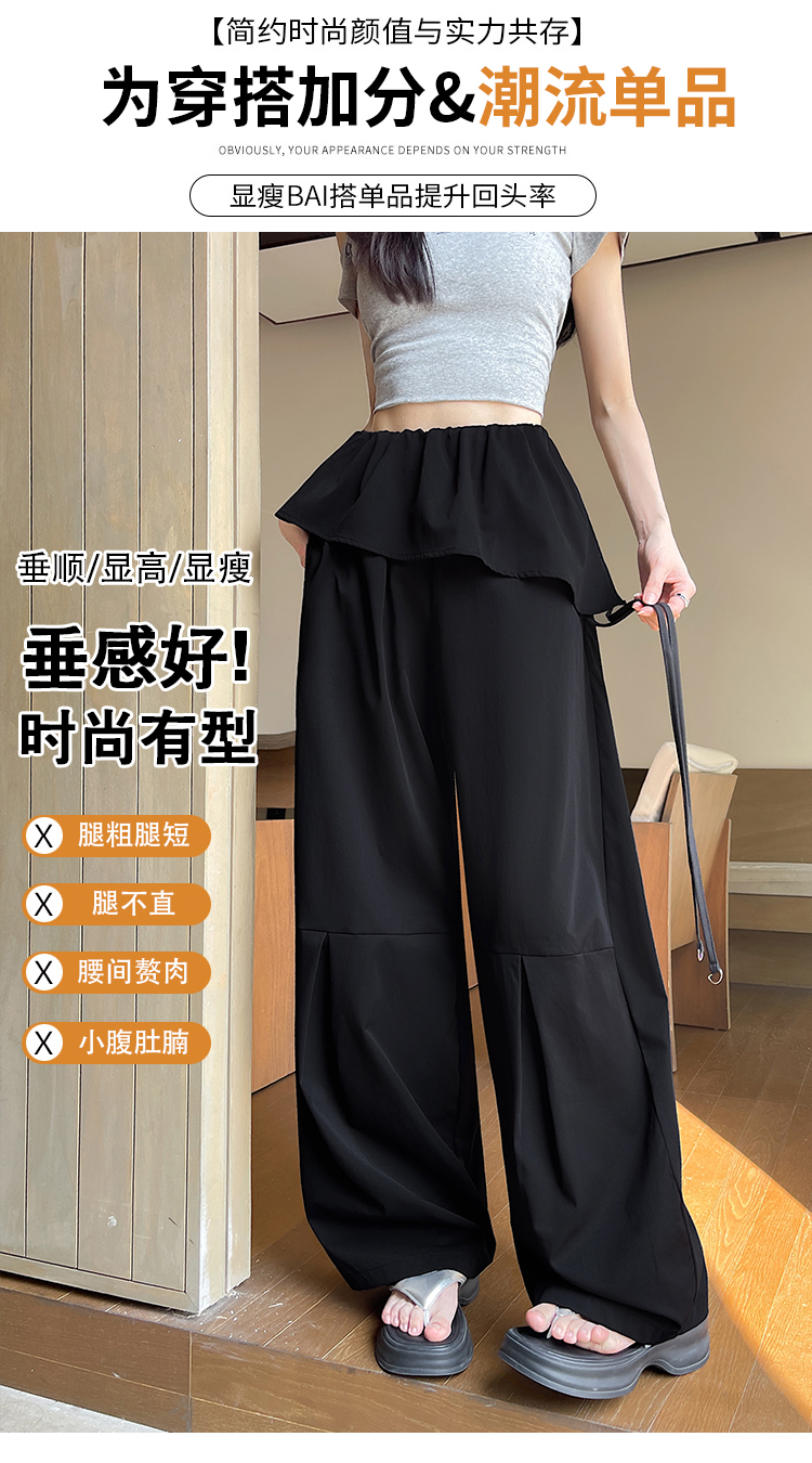 고급 센스 정장 바지 여성 여름 2026 얇은 스타일 하이웨이스트 슬림해 보이는 루즈핏 캐주얼 스트레이트 도루 센스 바닥 청소 와이드 레그 팬츠