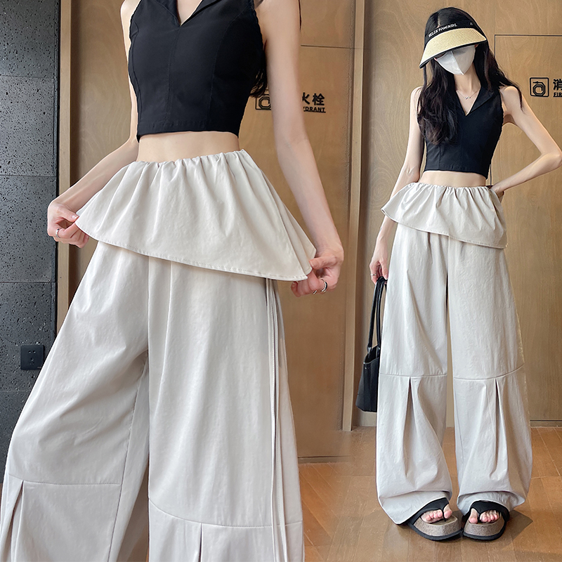 얼음 실크 면 린넨 와이드 레그 팬츠 치마 여성 2026 여름 얇은 스타일 야마모토 바지 허리밴드 하이웨이스트 도루 센스 바닥 청소 자외선 차단 바지