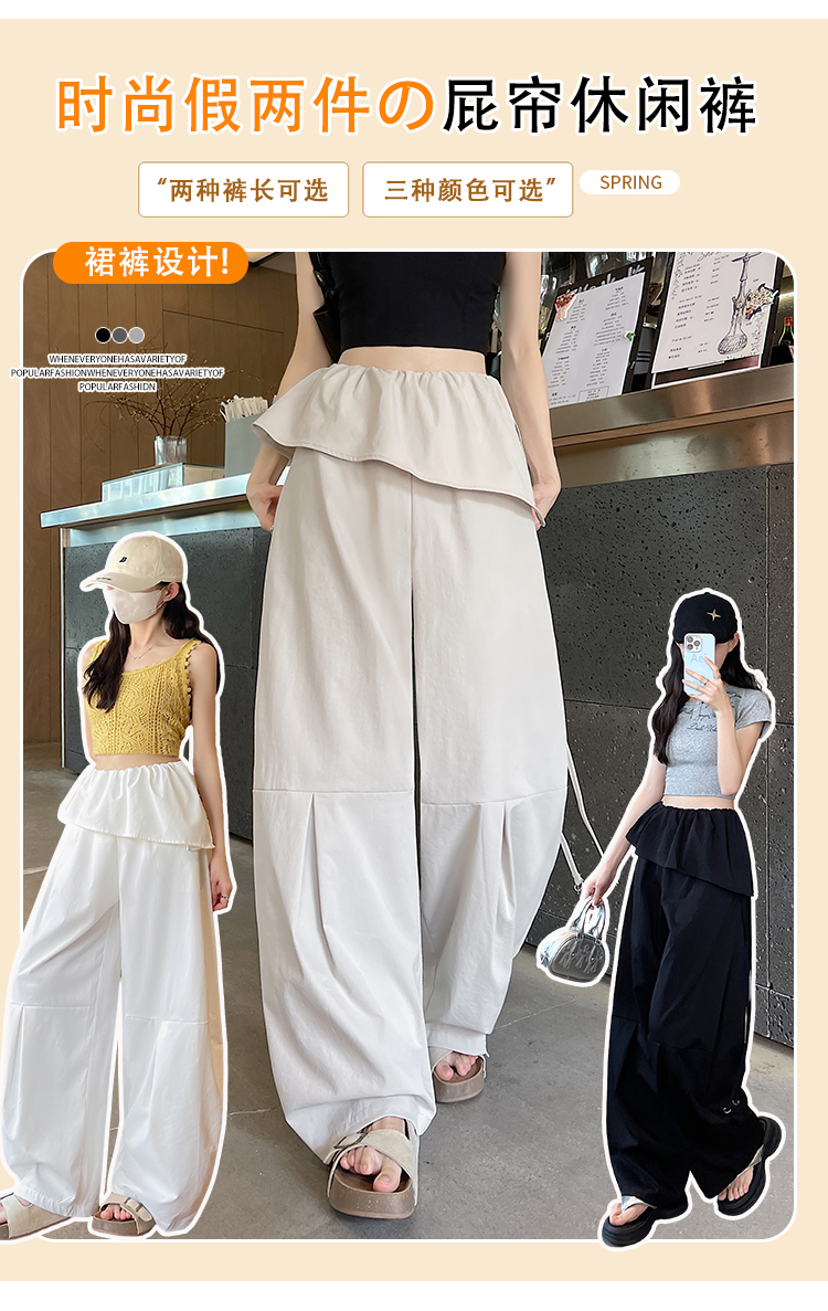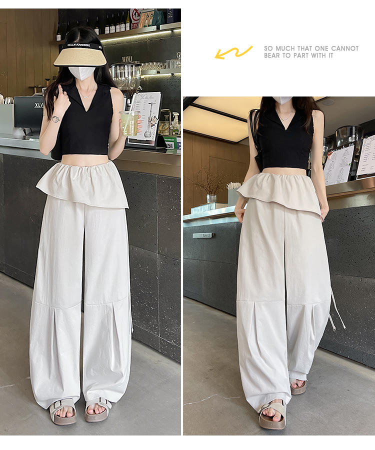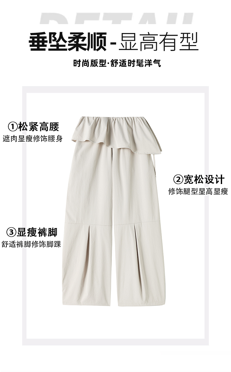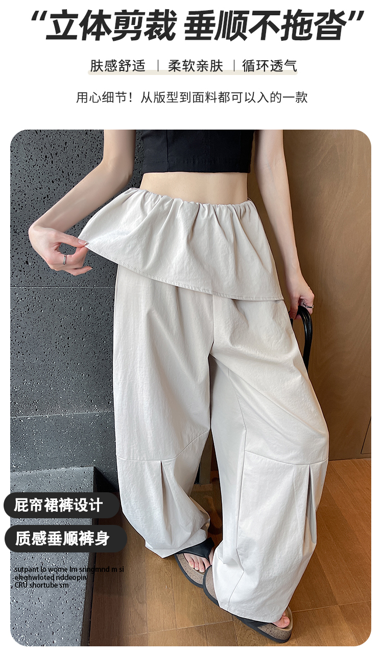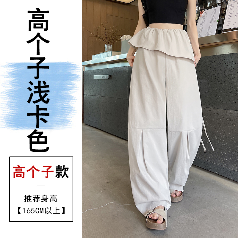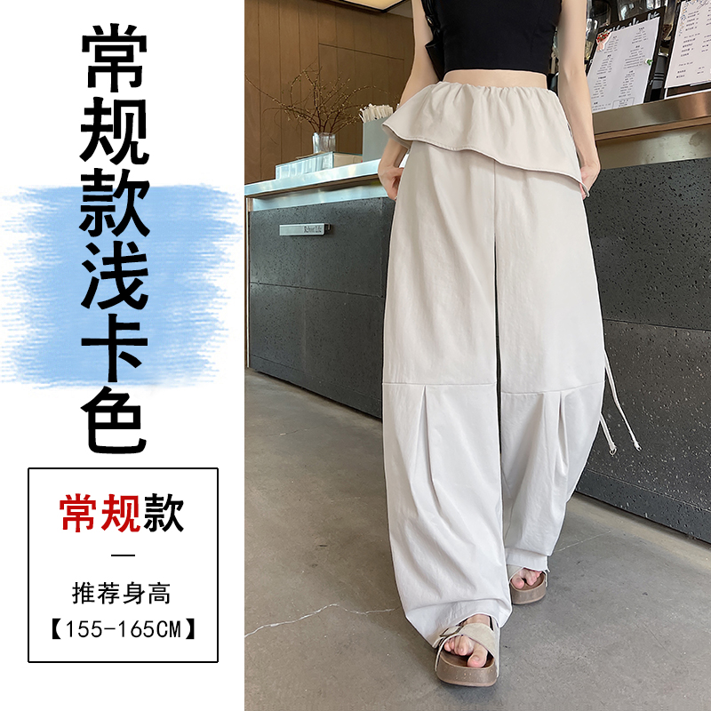 얕은 카드 색상 방귀 커튼 패치워크 속도 건조한 워크웨어 팬츠 여성 여름 얇은 스타일 2026 새로운 하이웨이스트 루즈핏 캐주얼 와이드 레그 팬츠