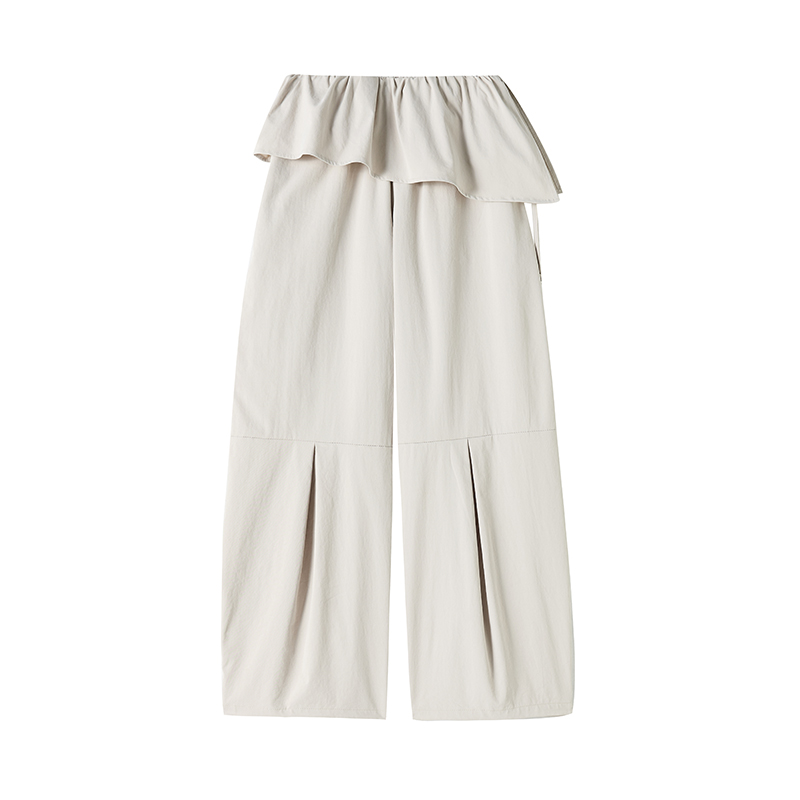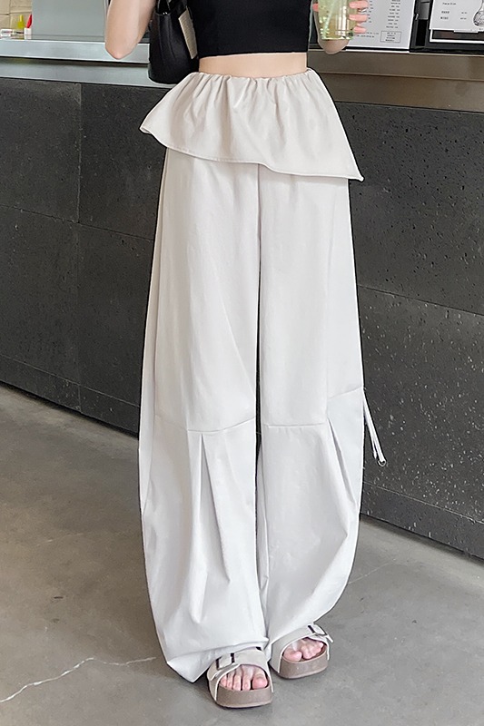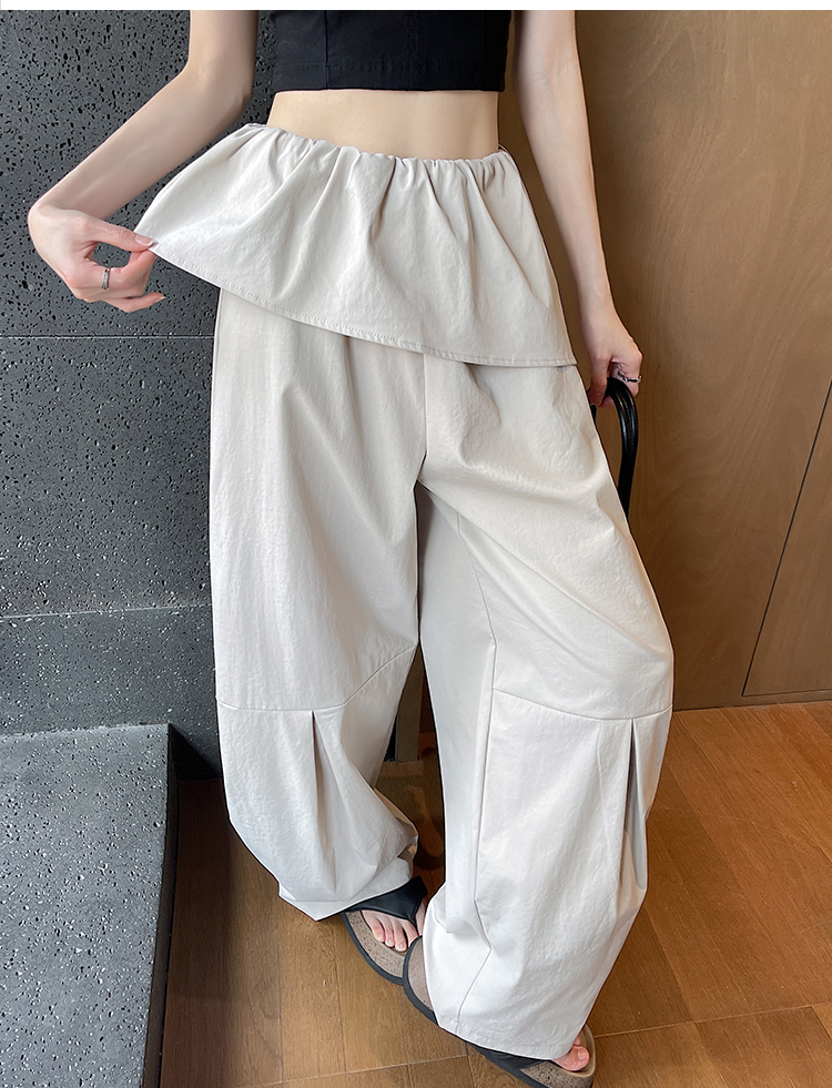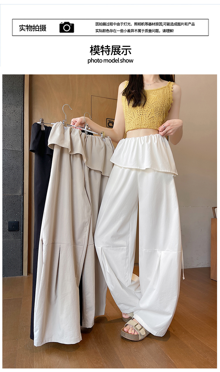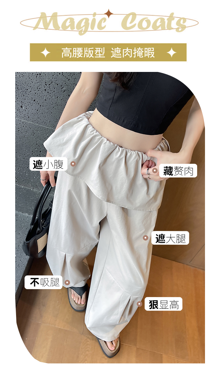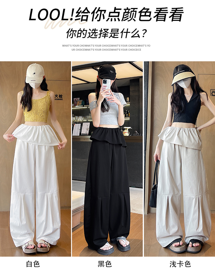 얕은 카드 색상 방귀 커튼 패치워크 속도 건조한 워크웨어 팬츠 여성 여름 얇은 스타일 2026 새로운 하이웨이스트 루즈핏 캐주얼 와이드 레그 팬츠