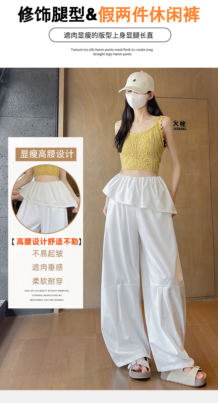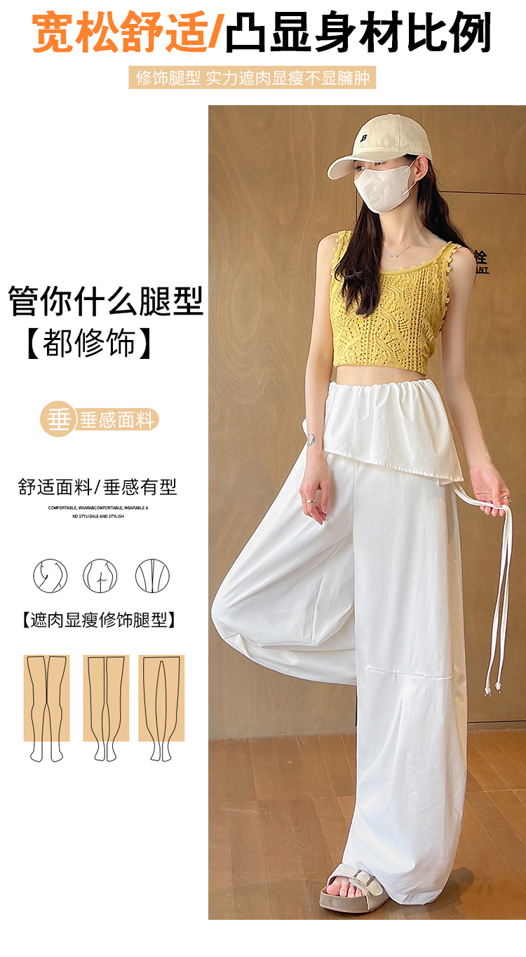 얼음 실크 면 린넨 v 단어 허리 와이드 레깅스 바지 2026 여름 얇은 스타일 야마모토 바지 느긋한 도루 센스 루즈핏 바닥 청소 치마바지