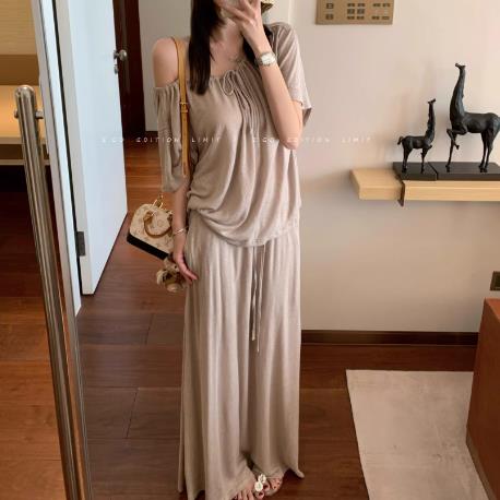 e go studio 100 일 실크 얼음 센스 실크 미끄러짐 흔들다 칼라 수 있습니다. 비스듬한 어깨 오프숄더 오래된 돈 느슨함 센스 모직물 티셔츠
