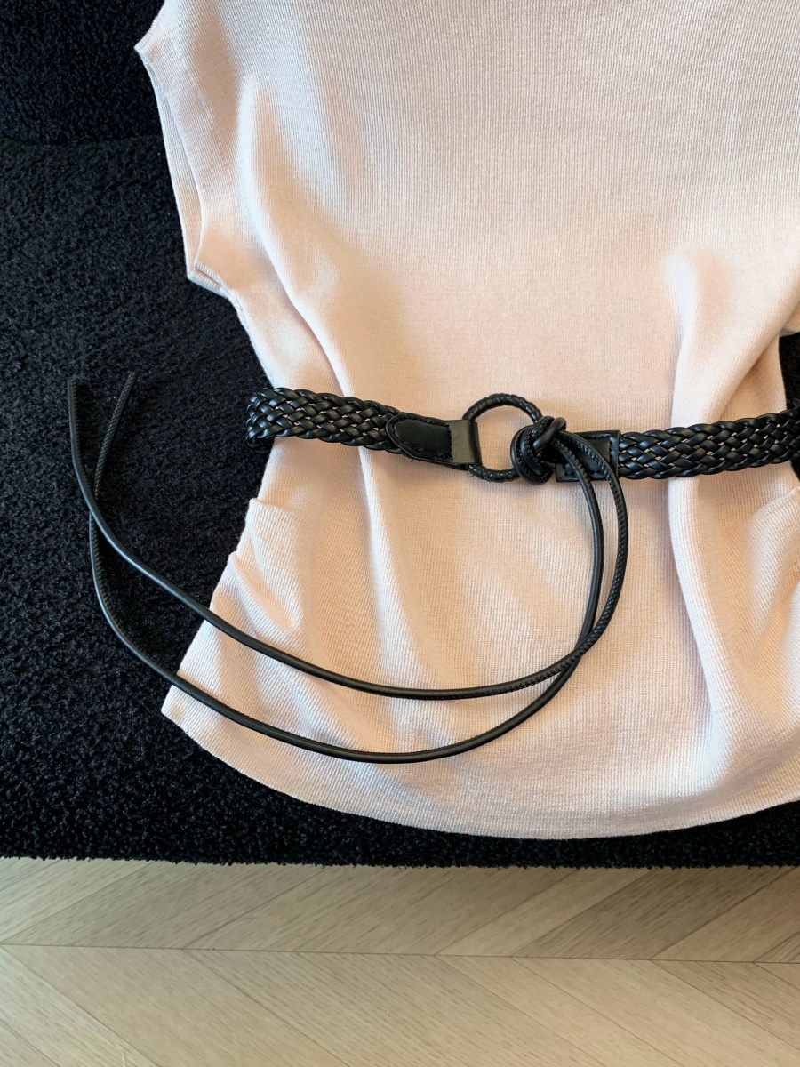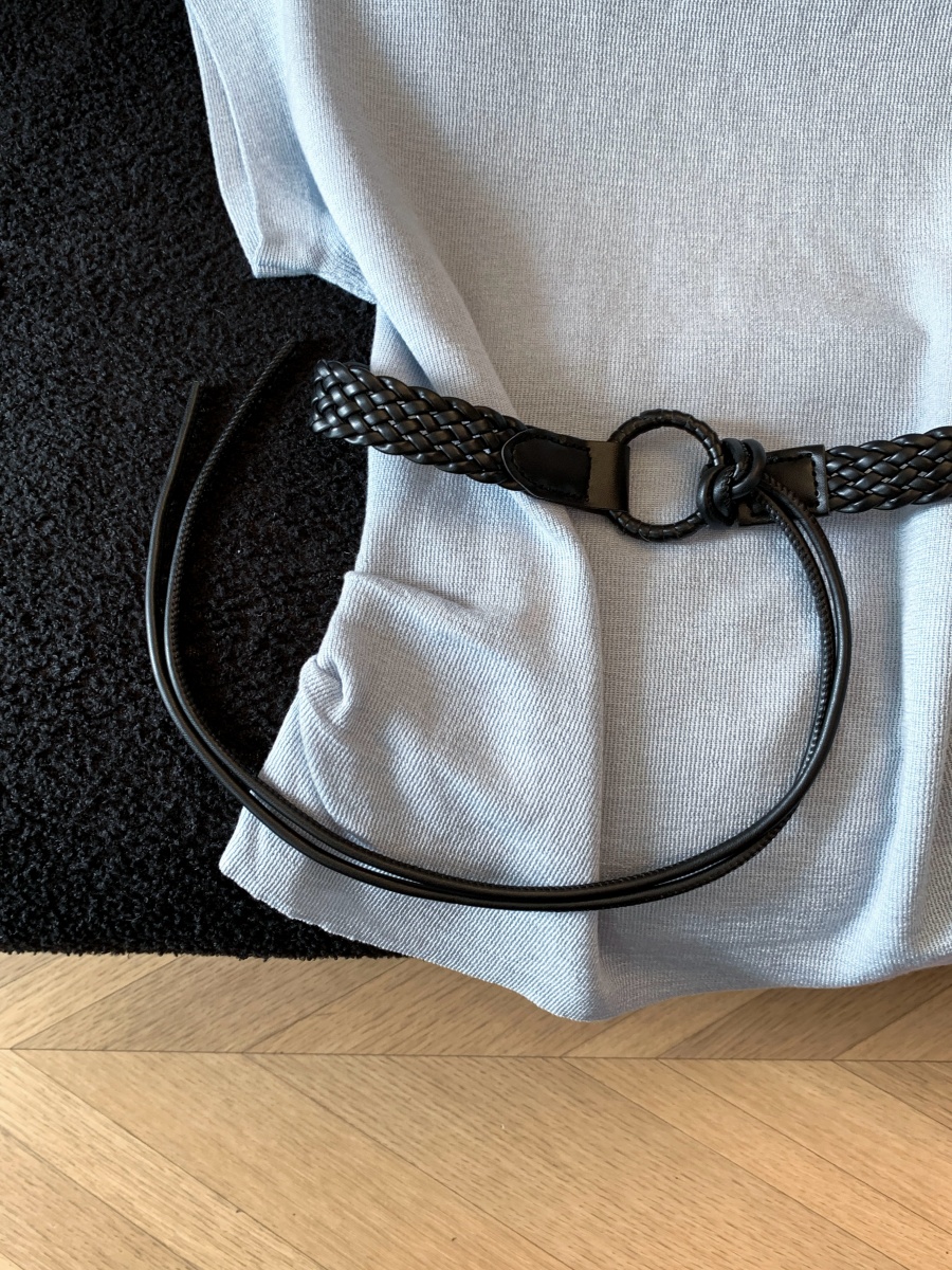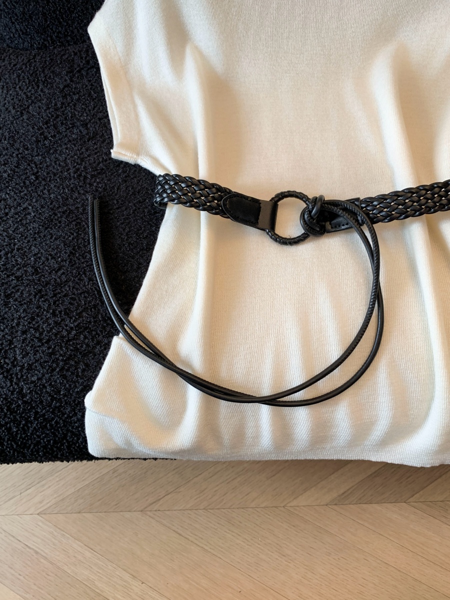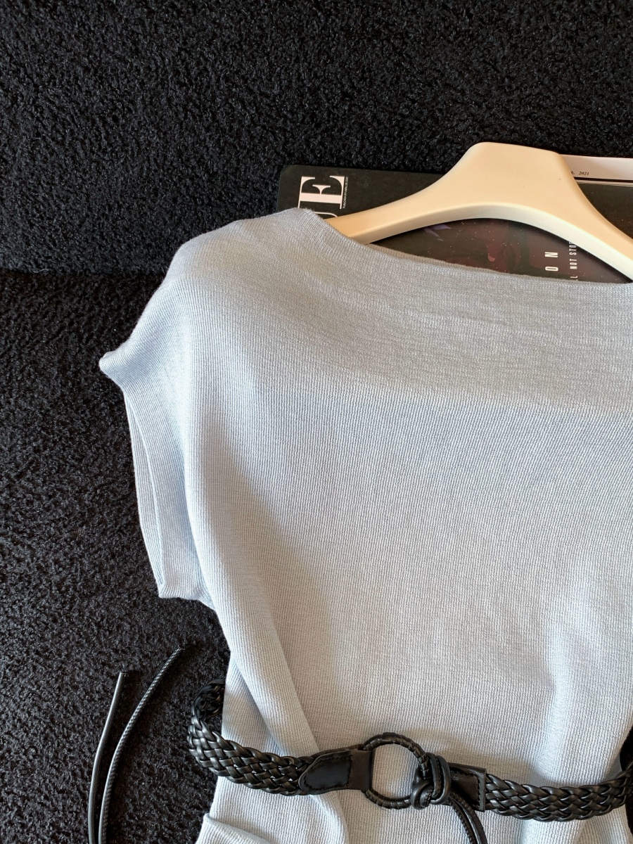 실사 한 부서 Chic 연령 감소 배트윙 소매 라운드 넥 오프숄더 니트 느긋한 바람 품격 패션 고급 센스 벨트 포함