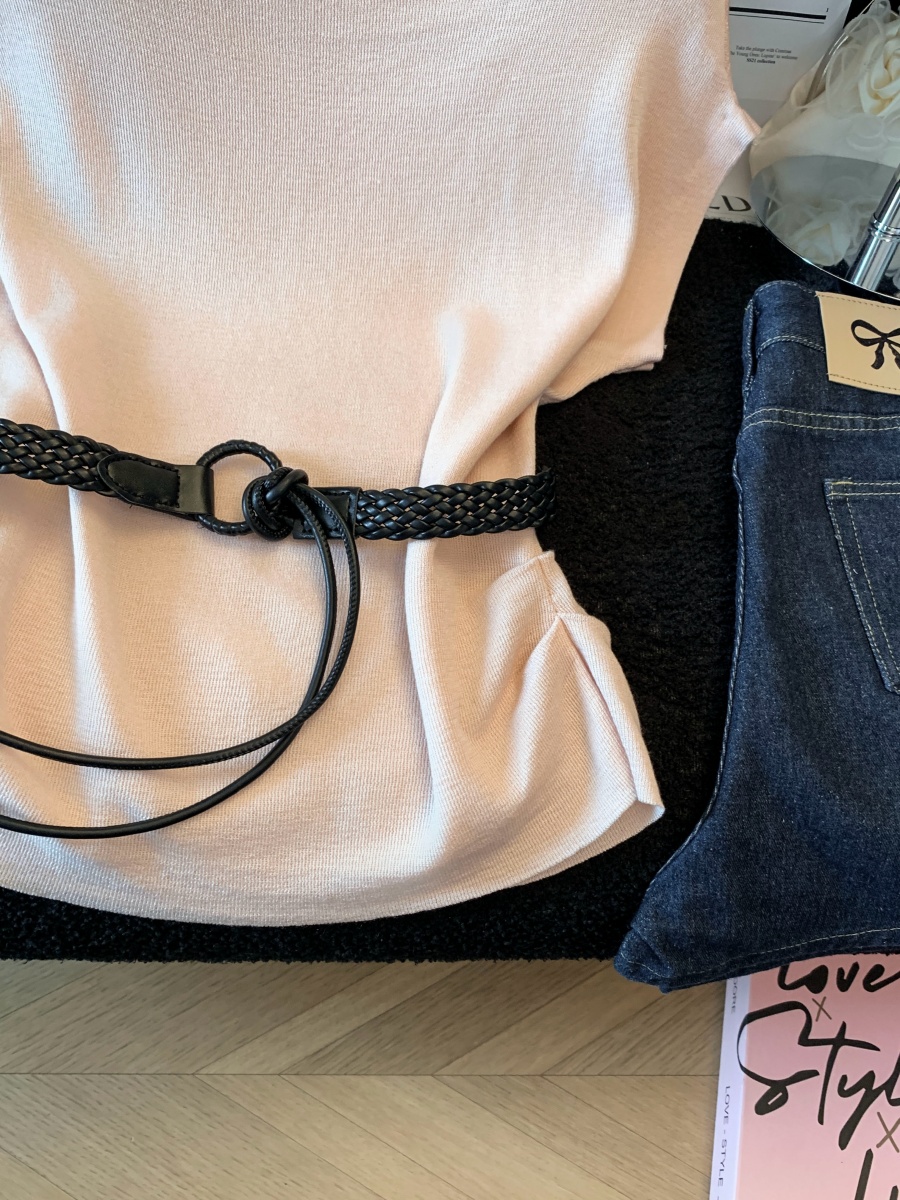 실사 도파민 순수한 욕망 바람 니트 스웨터 디자인 센스 패션 몸매 가꾸기 주름 반팔 달콤한 매운맛 chic 흔들다 칼라 맨위
