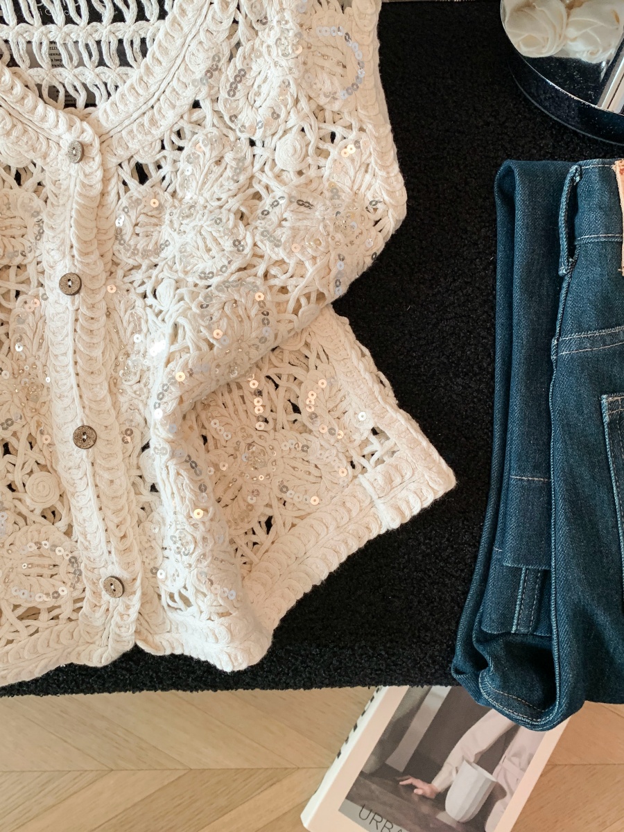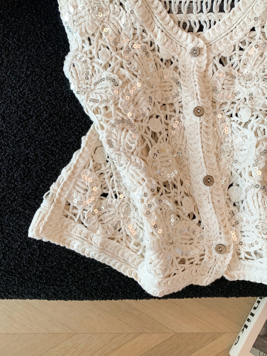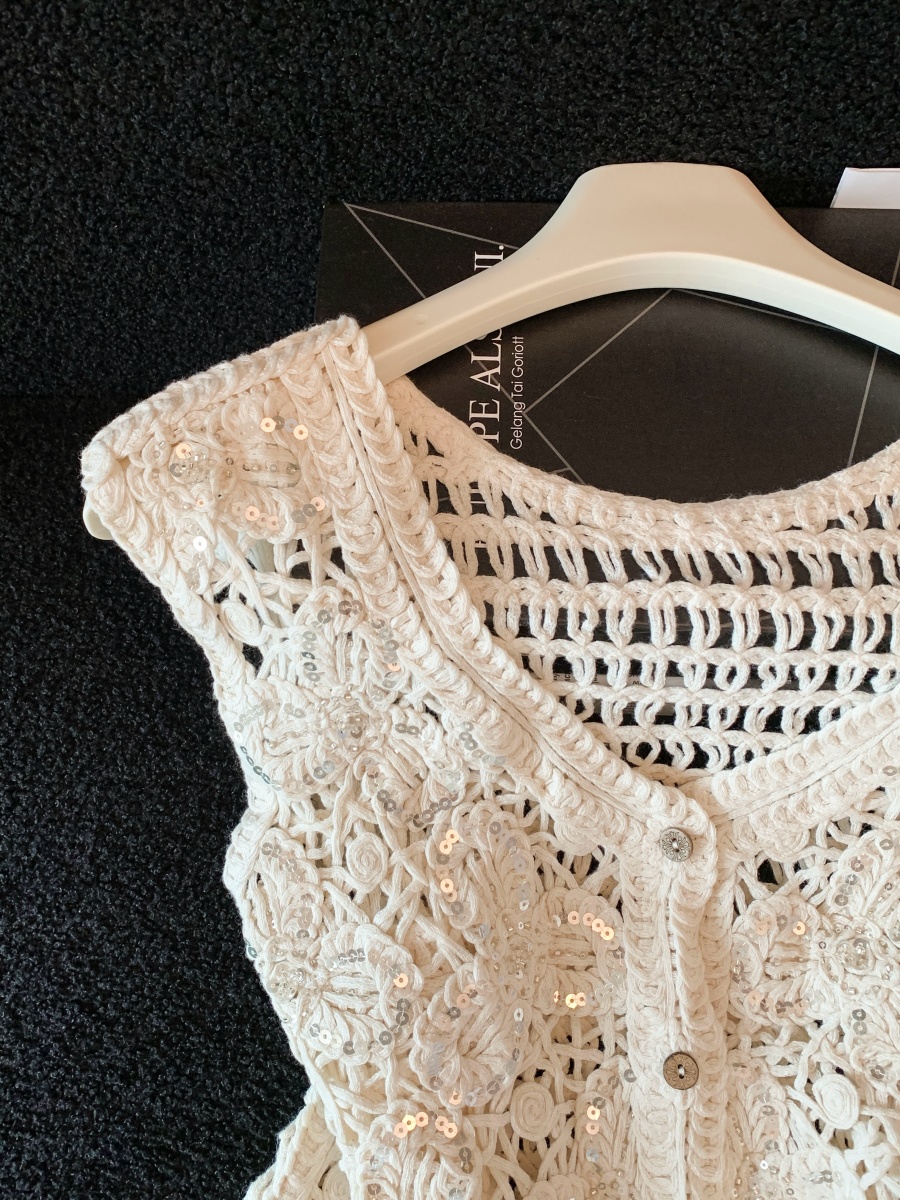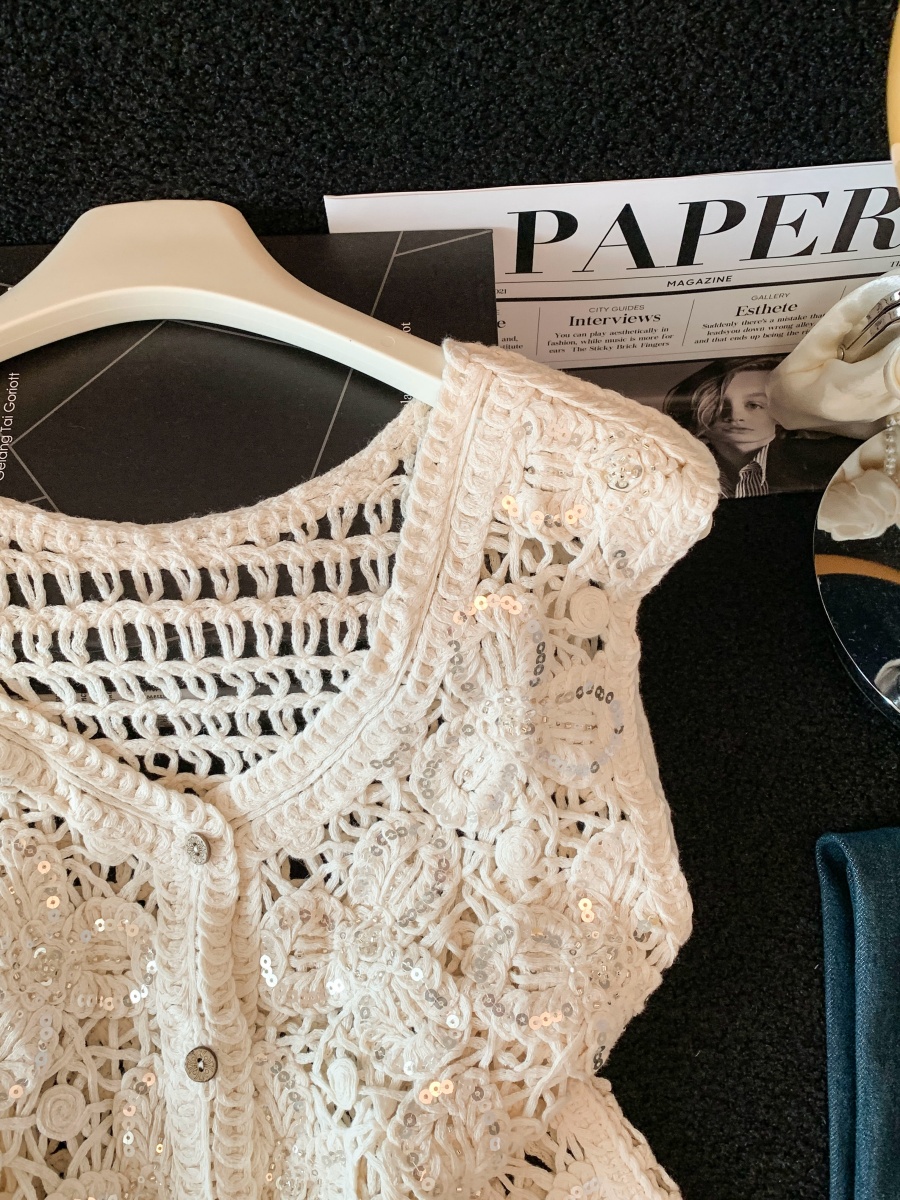 실사 한 부서 chic Chic 여름 휴가 외출용 홀로우 아웃 니트 민소매 맨위 여성 새로운 외출용 레이스
