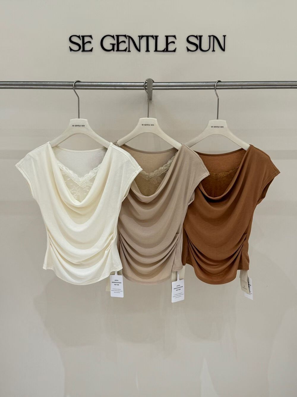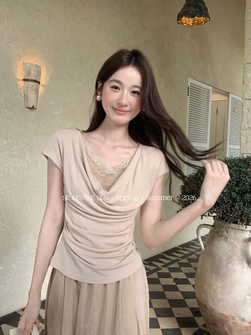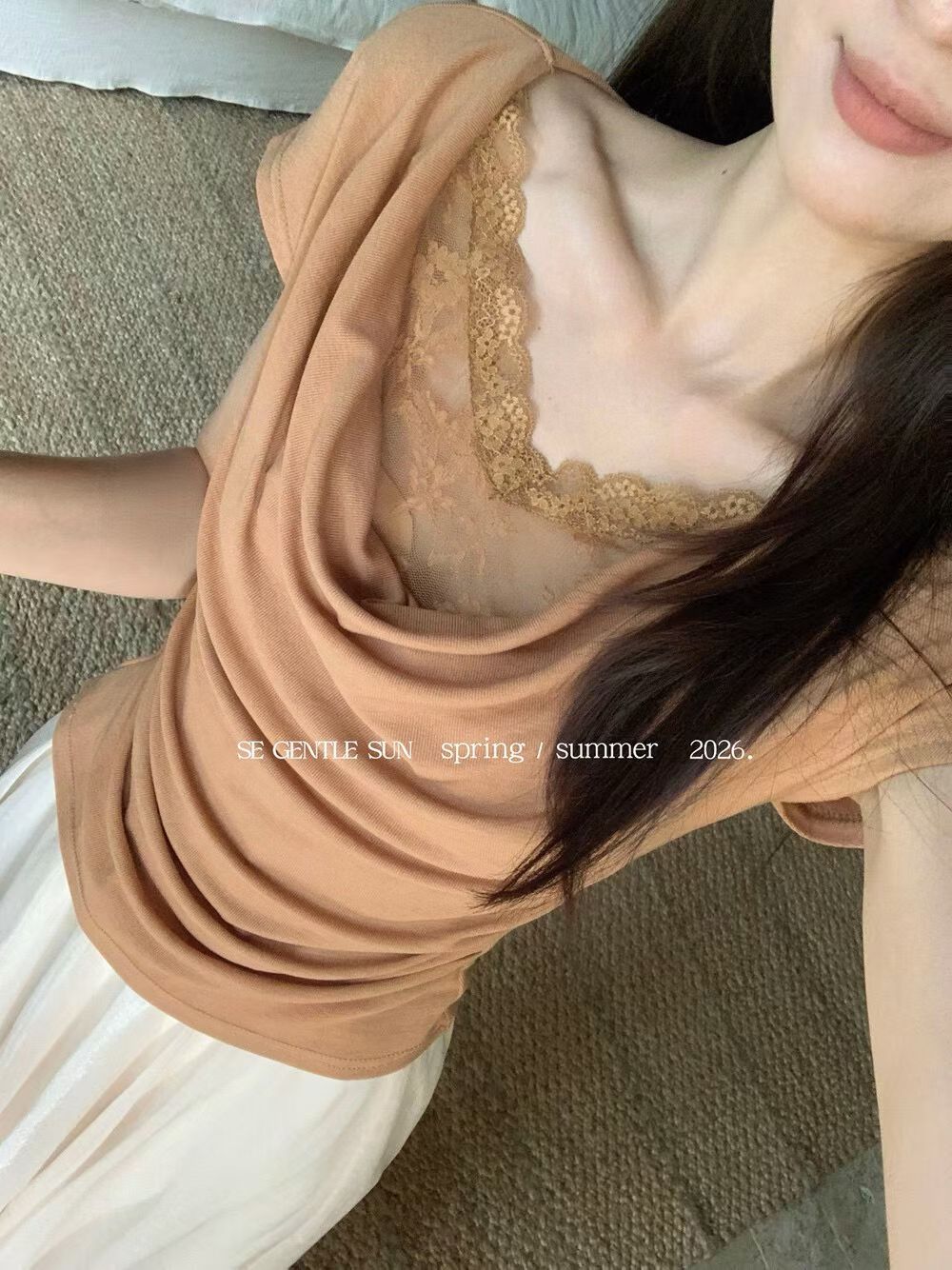 2026 여름 섹션 흔들다 칼라 페이크 레이어드 반팔 티셔츠 여성 순수한 욕망 레이스 조각 페이크 레이어드 작은 셔츠 맨위 여성