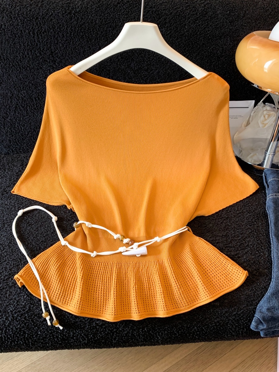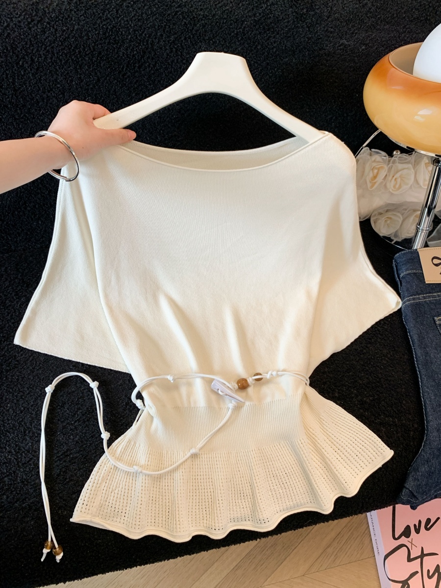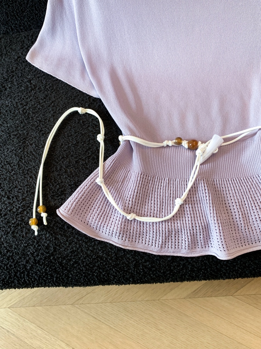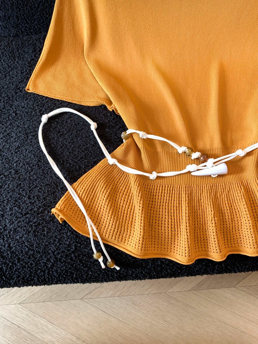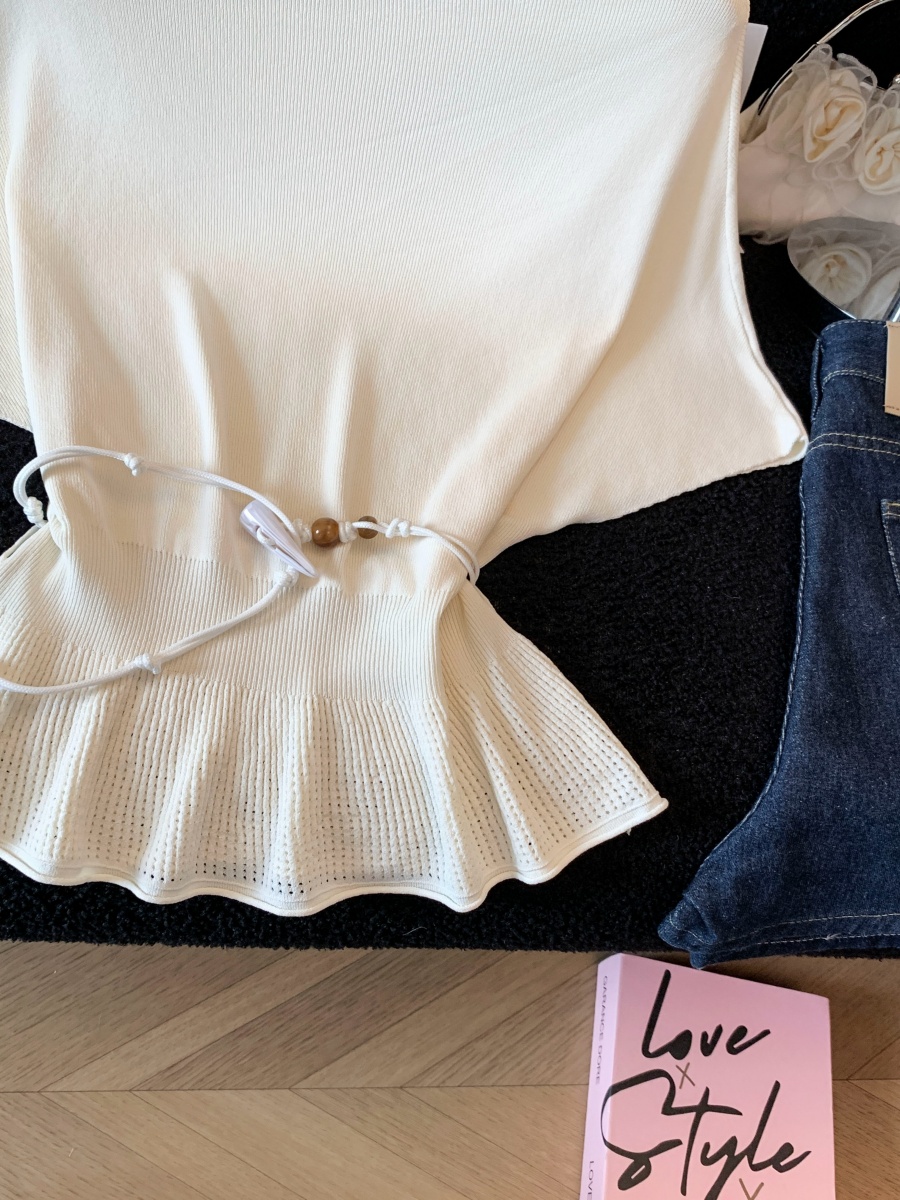 실사 도파민 순수한 욕망 바람 니트 스웨터 디자인 센스 패션 몸매 가꾸기 주름 반팔 달콤한 매운맛 chic 흔들다 칼라 맨위