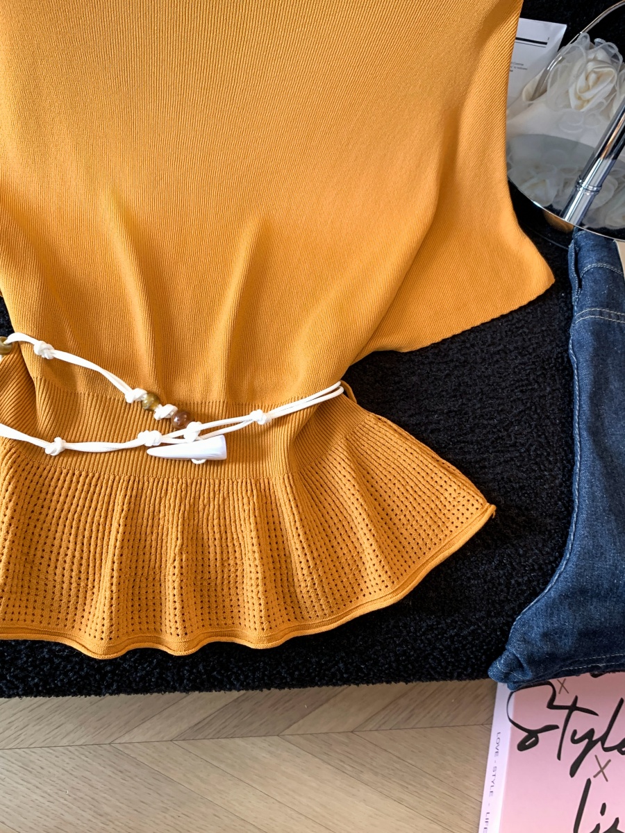 실사 여름 한 부서 순수한 욕망 칼라 니트 캐미솔 몸매 가꾸기 민소매 맨위 분위기 센스 핫걸 조끼