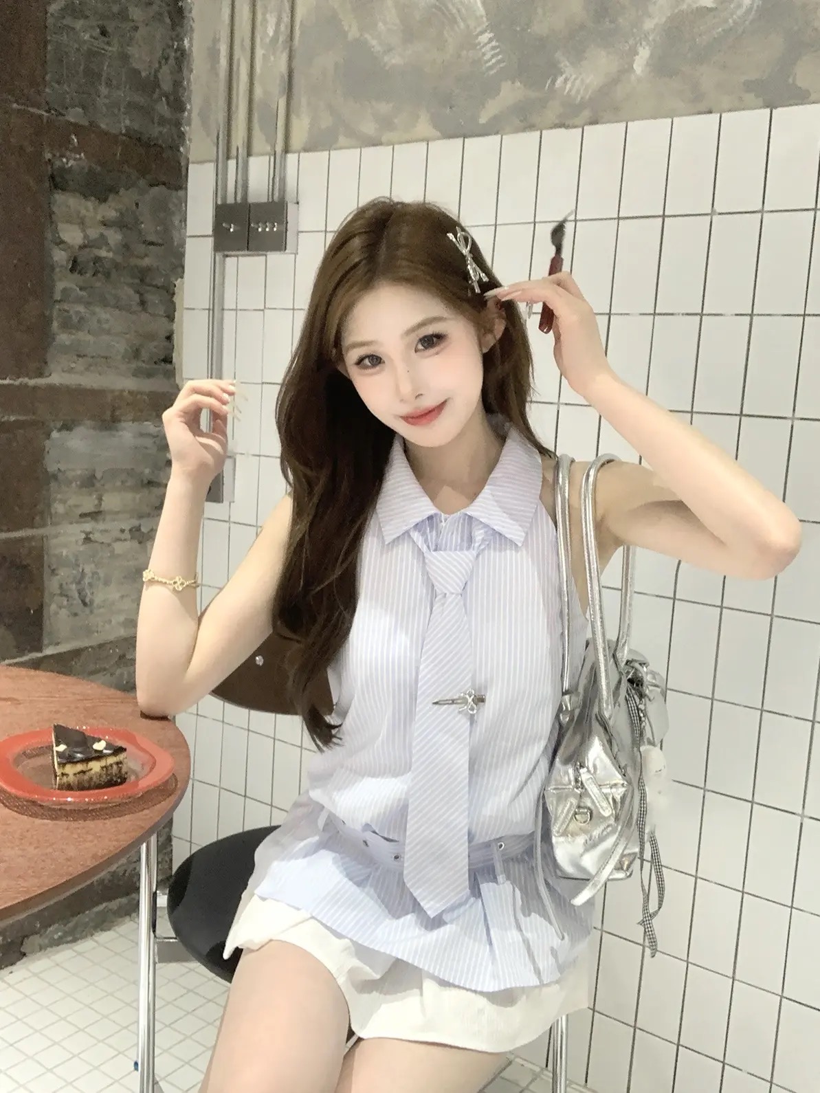 프랑스식 달콤함 나비 매듭 배색 스트라이프 민소매 여성 셔츠 2026 여름 디자인 센스 몸매 가꾸기 슬림해 보이는 조끼 맨위