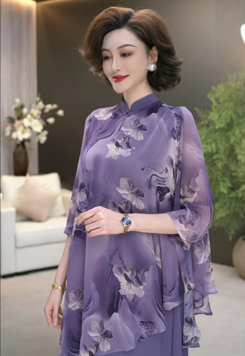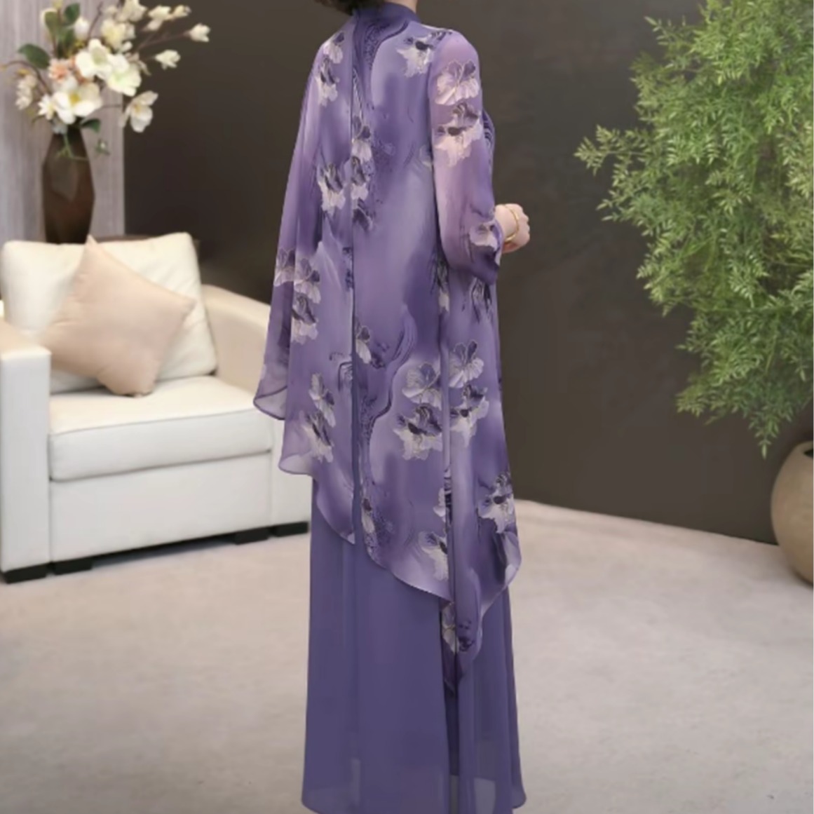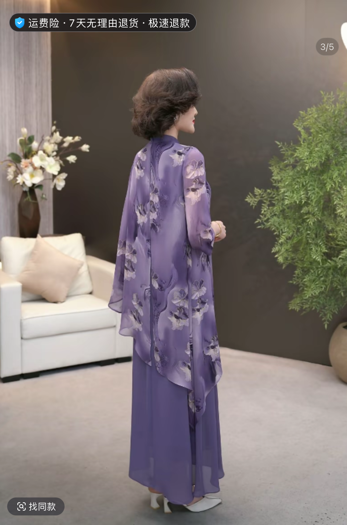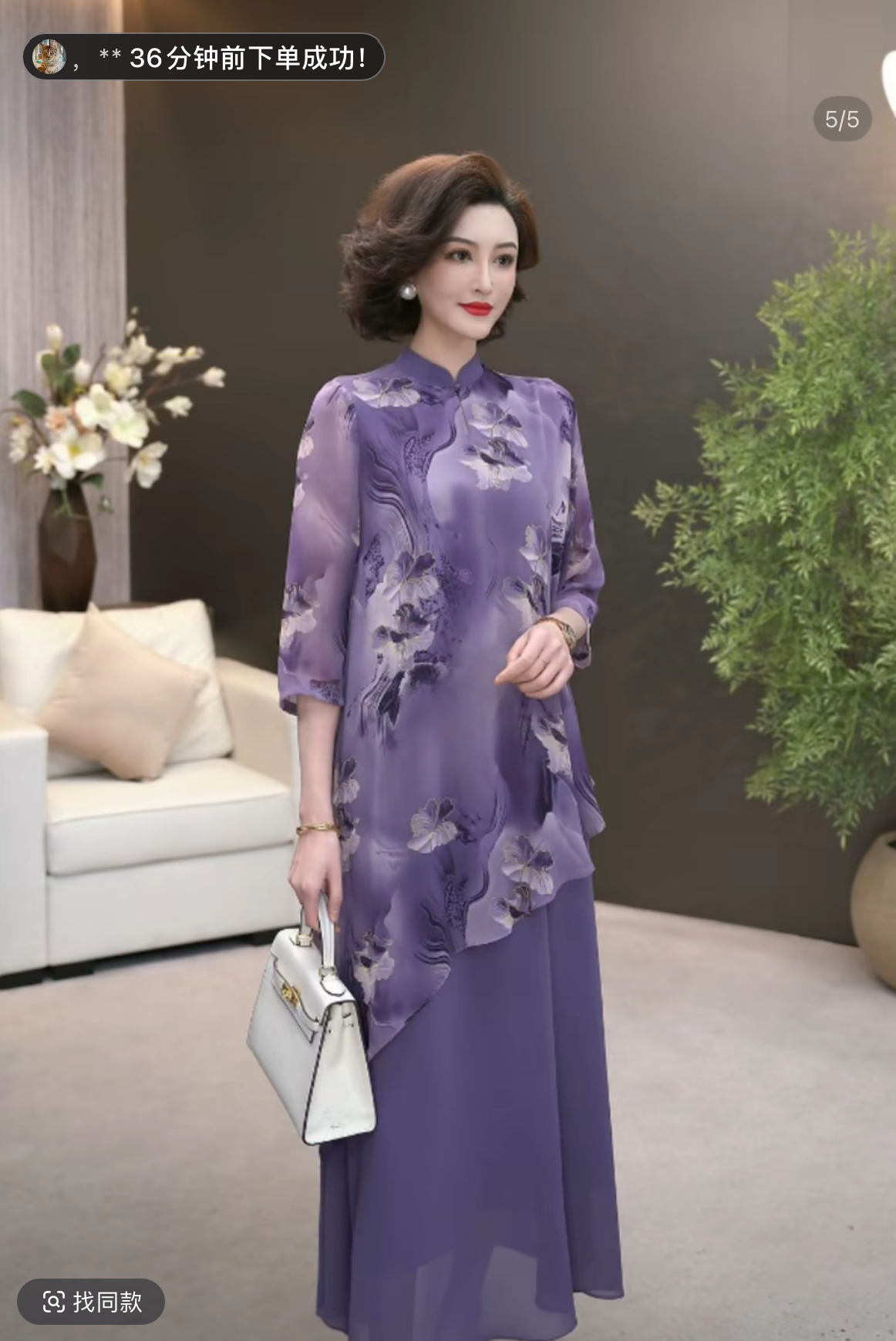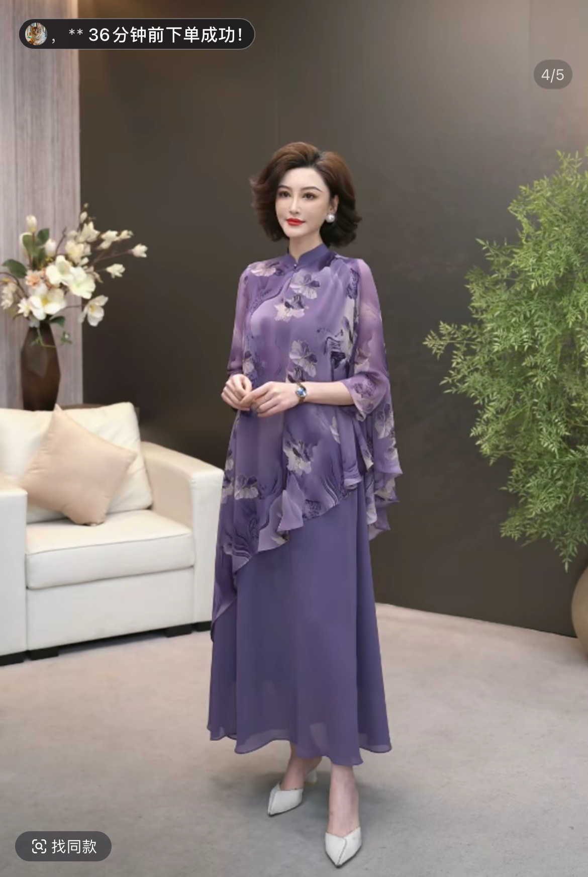 새로운 중식 엄마 2026 여성 여름 드레스 연령 감소 국풍 꽃무늬 슬림해 보이는 페이크 레이어드 외국 가스 드레스