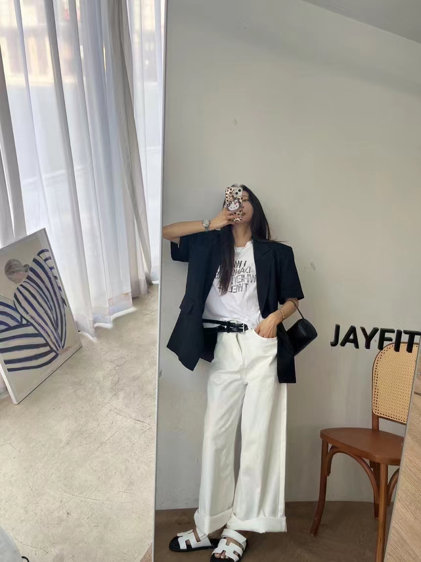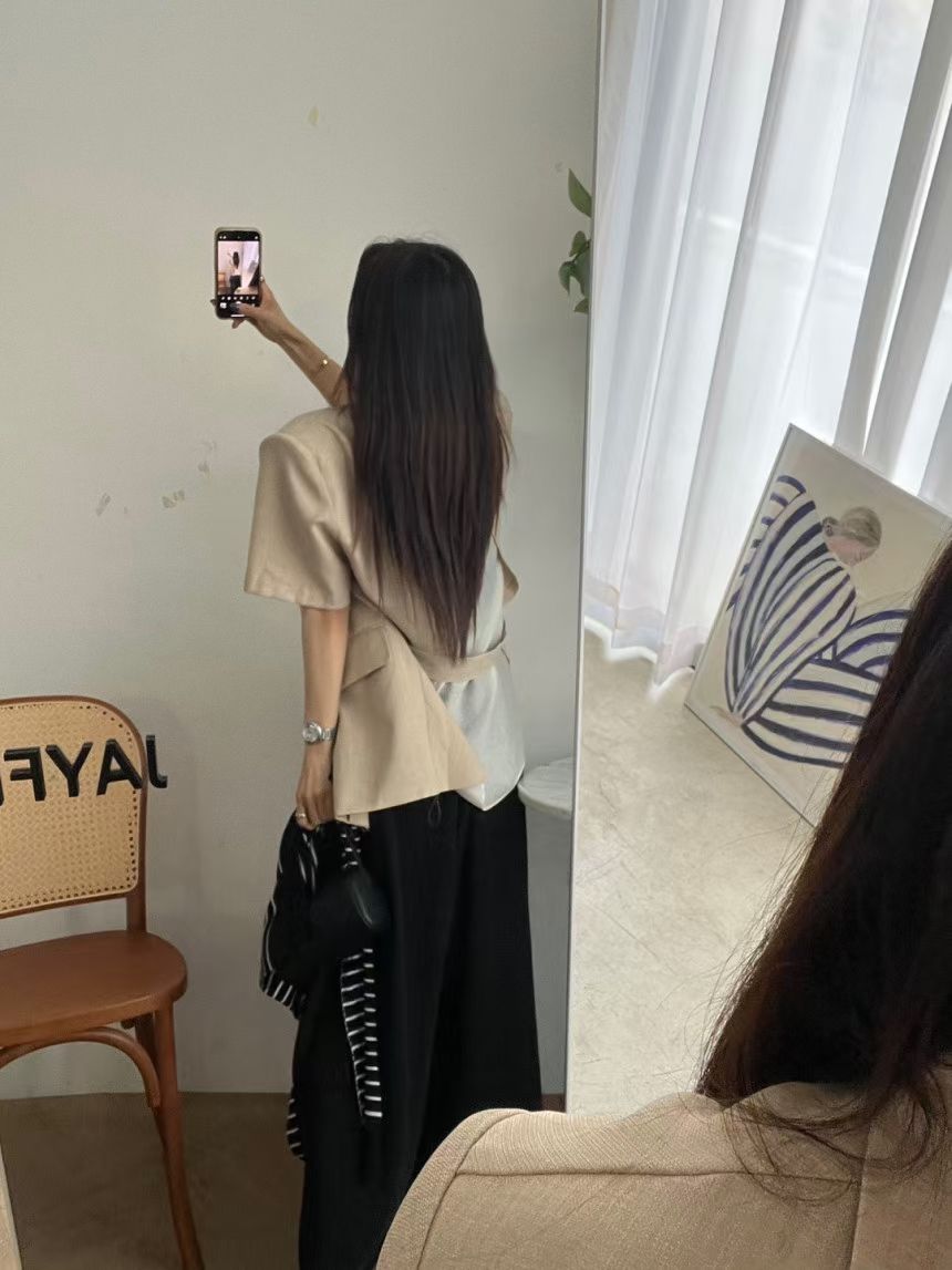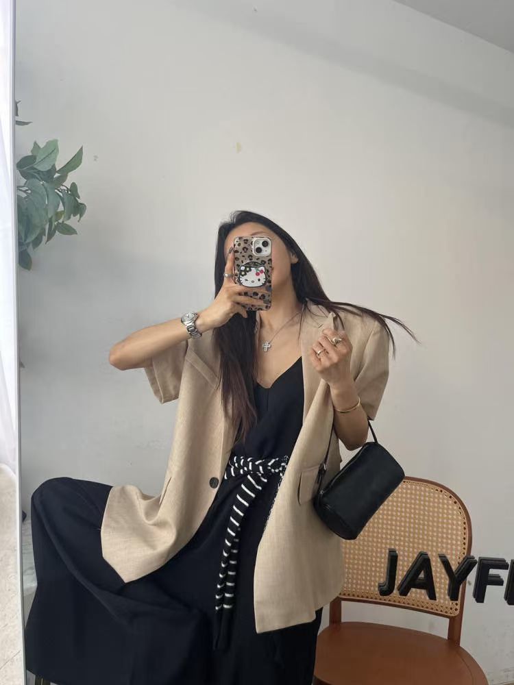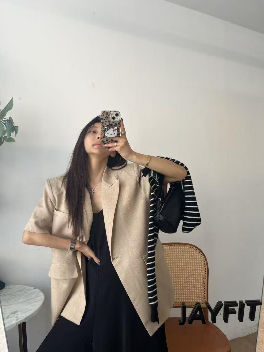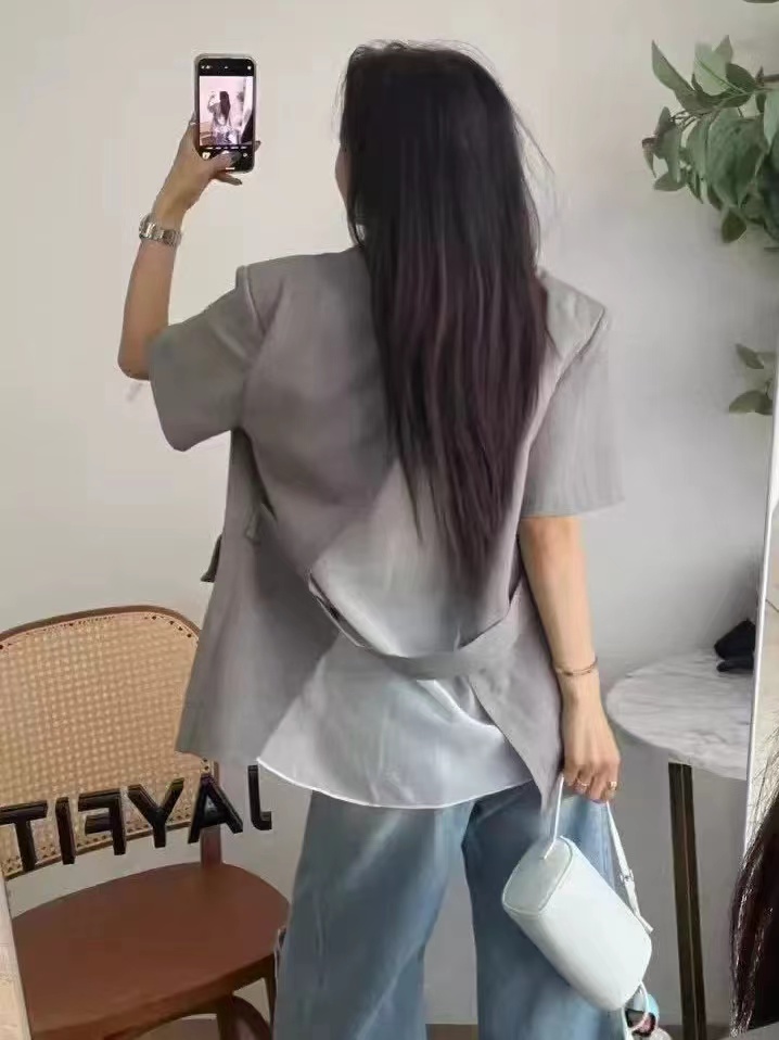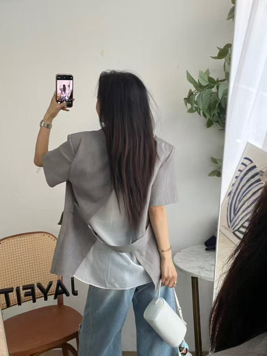 여름 얇은 스타일 인터넷 유명인 패션 품격 중간 길이 캐주얼 반팔 블레이저 정장 여성