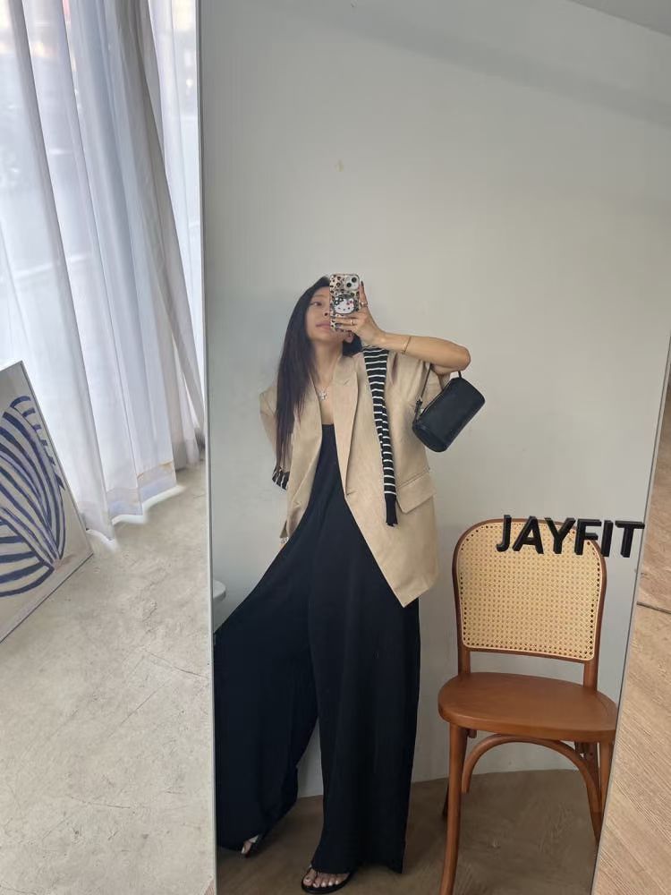 2026 여름 섹션 아메리칸 워크웨어 데님 멜빵 여성 드레스 루즈핏 캐주얼 주름 슬립 드레스 롱 스커트