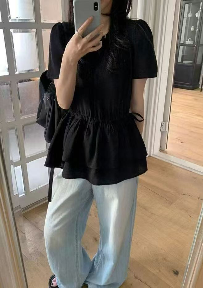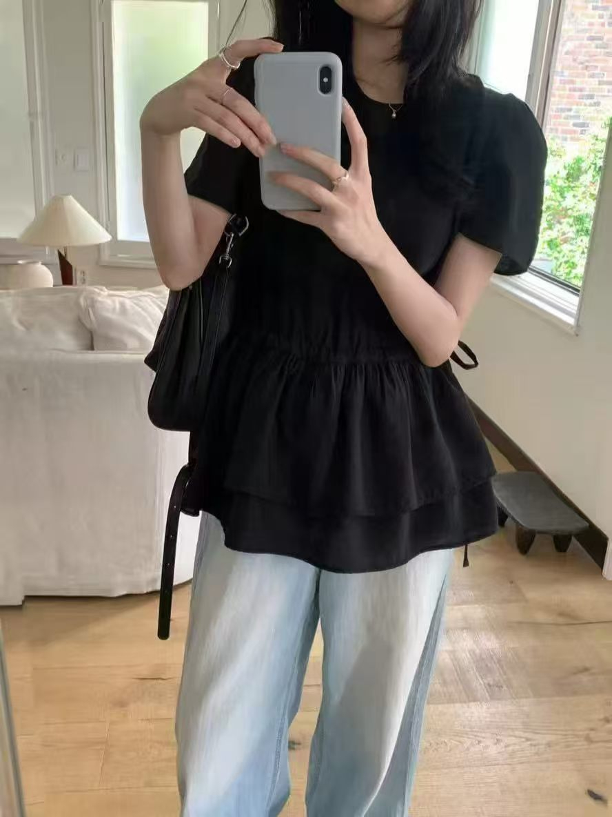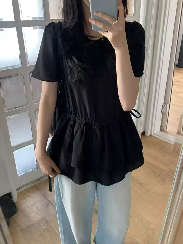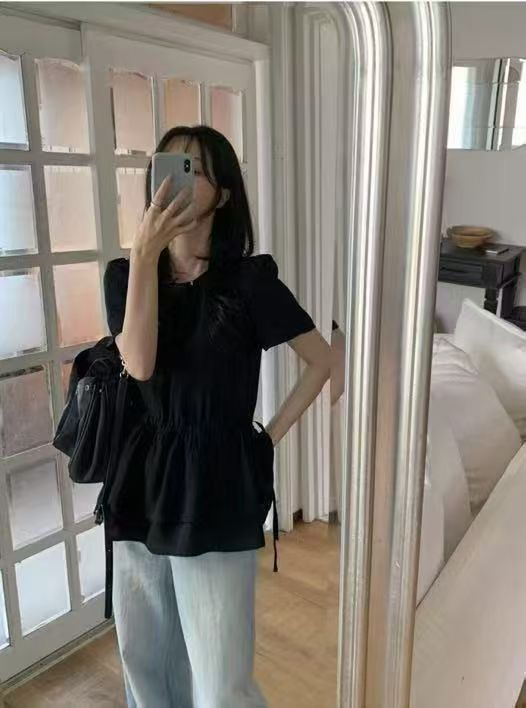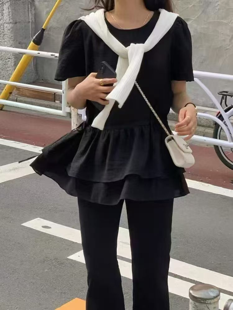 한국 chic 여름 이후 트임 스트랩 반팔 티셔츠 맨위 펌프 로프 넓은 다리가 짧다. 바지 투피스 세트