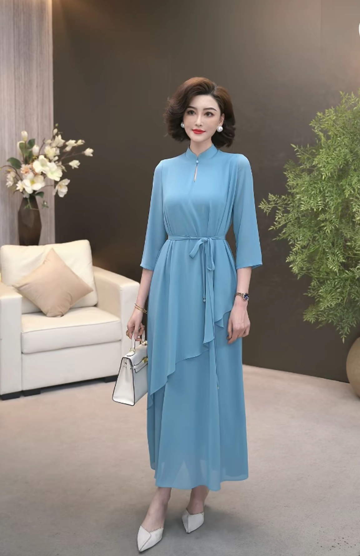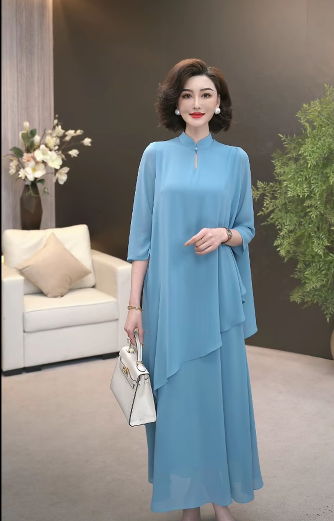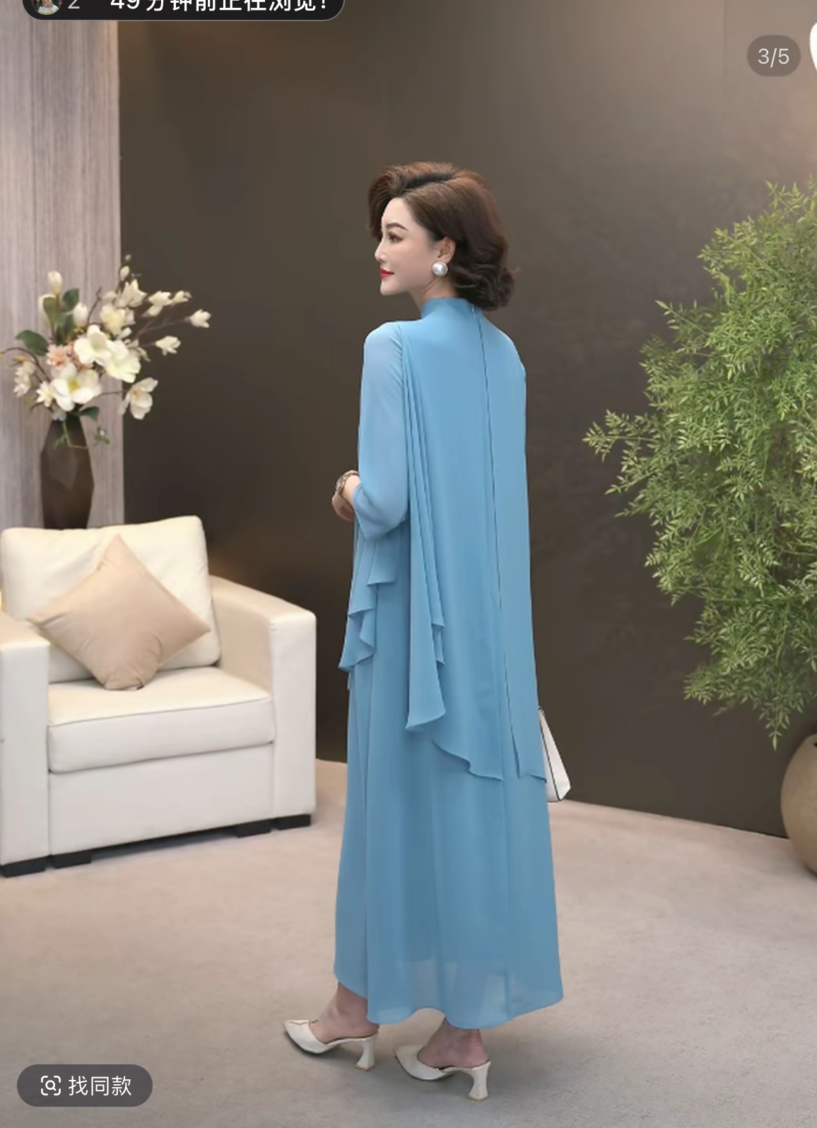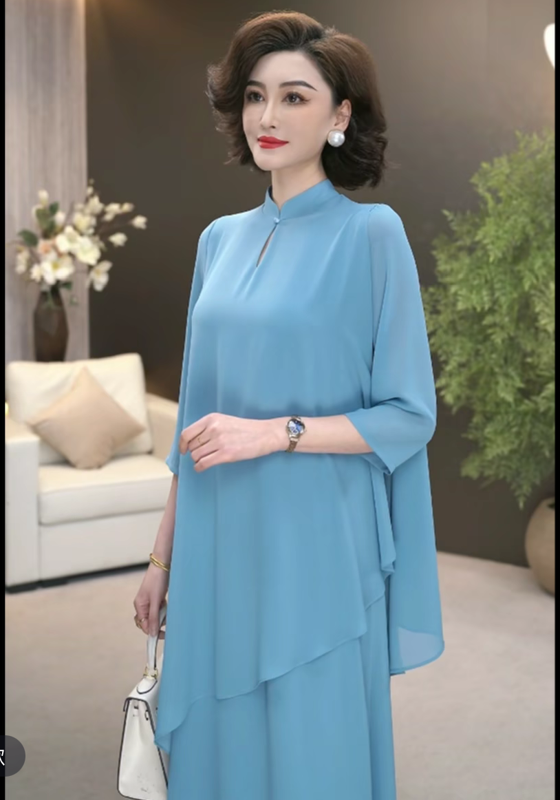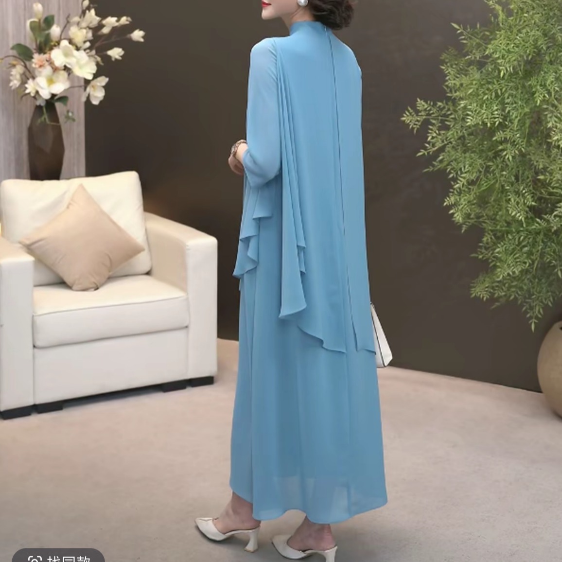 새로운 중식 엄마 2026 여성 여름 드레스 연령 감소 국풍 꽃무늬 슬림해 보이는 페이크 레이어드 외국 가스 드레스