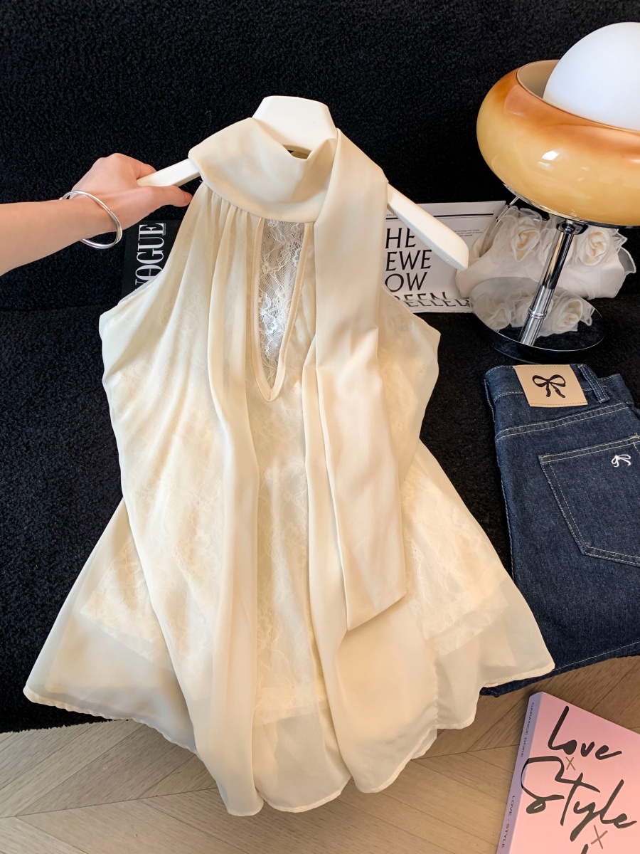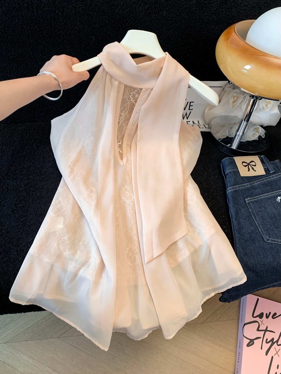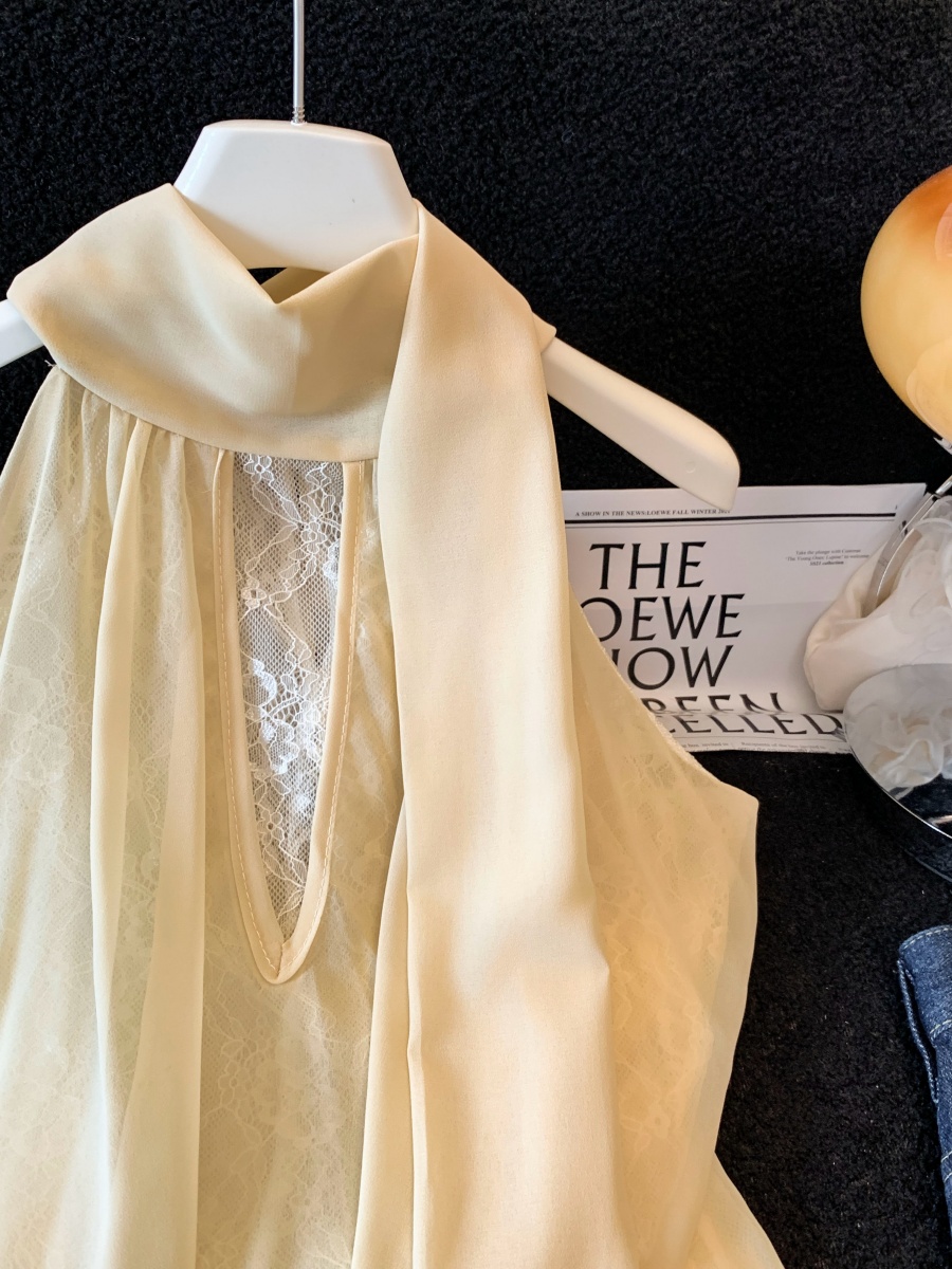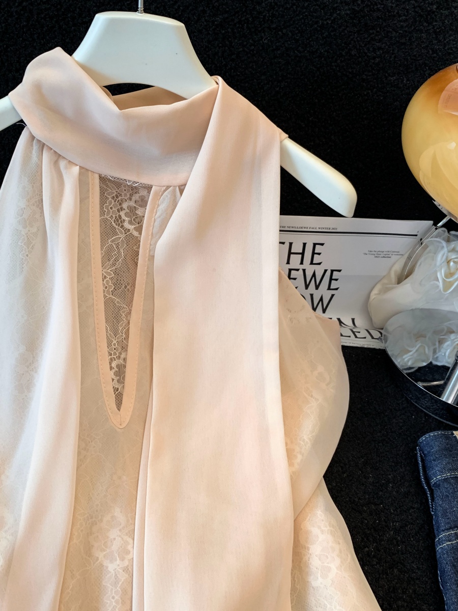 실사 한 부서 chic Chic 여름 휴가 외출용 홀로우 아웃 니트 민소매 맨위 여성 새로운 외출용 레이스