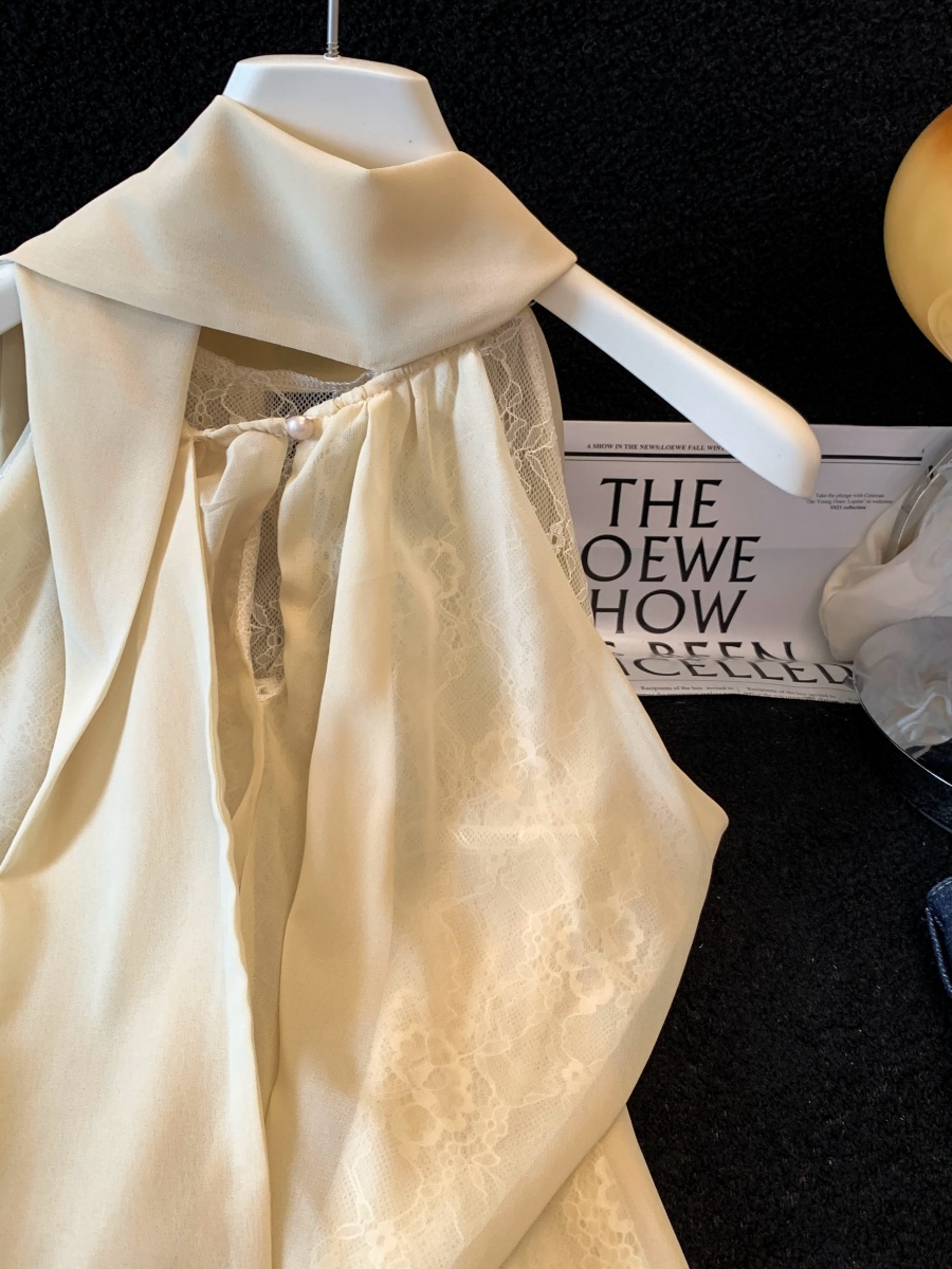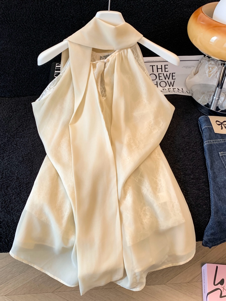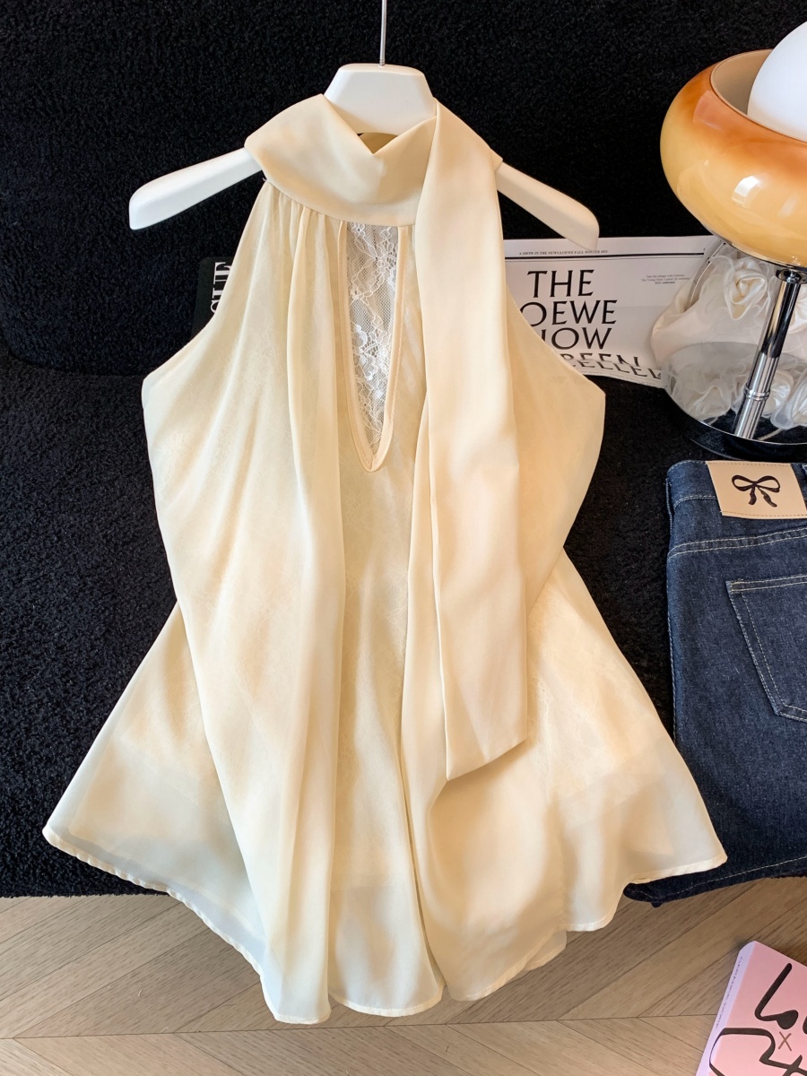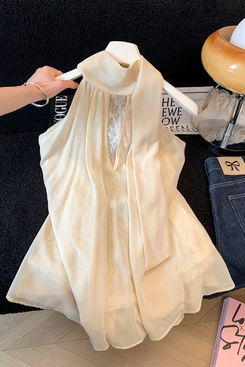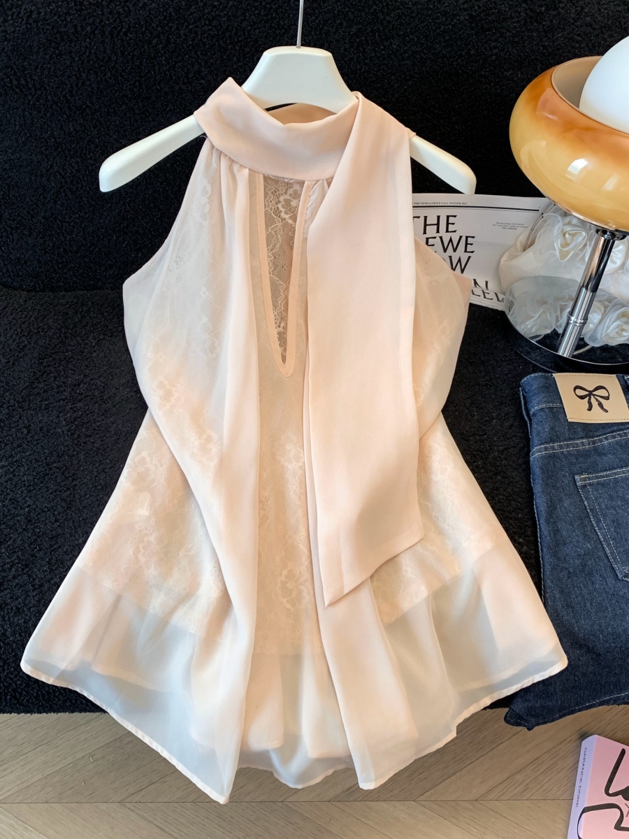실사 한 부서 chic Chic 여름 휴가 외출용 홀로우 아웃 니트 민소매 맨위 여성 새로운 외출용 레이스