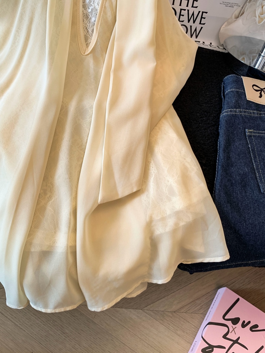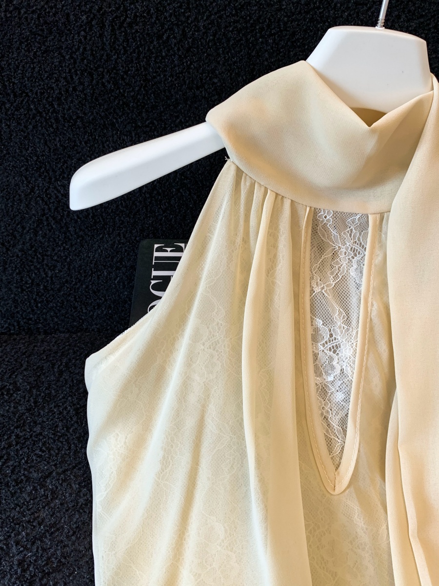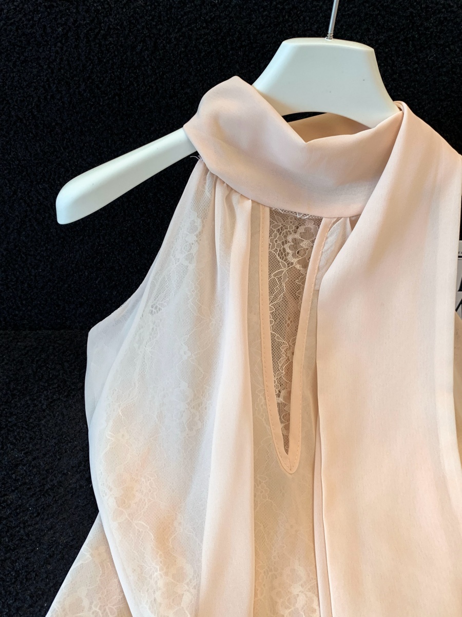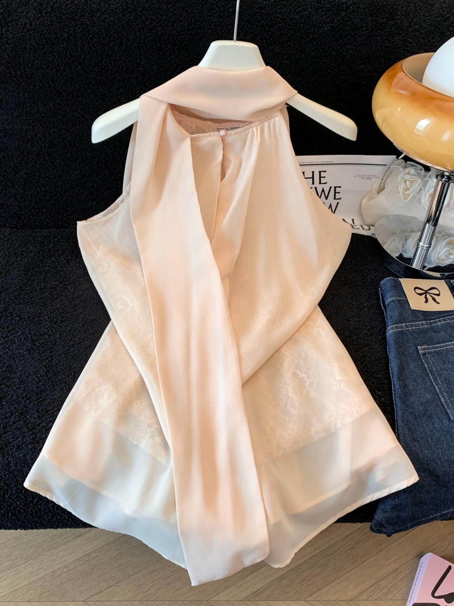 실사 한 부서 chic Chic 여름 휴가 외출용 홀로우 아웃 니트 민소매 맨위 여성 새로운 외출용 레이스