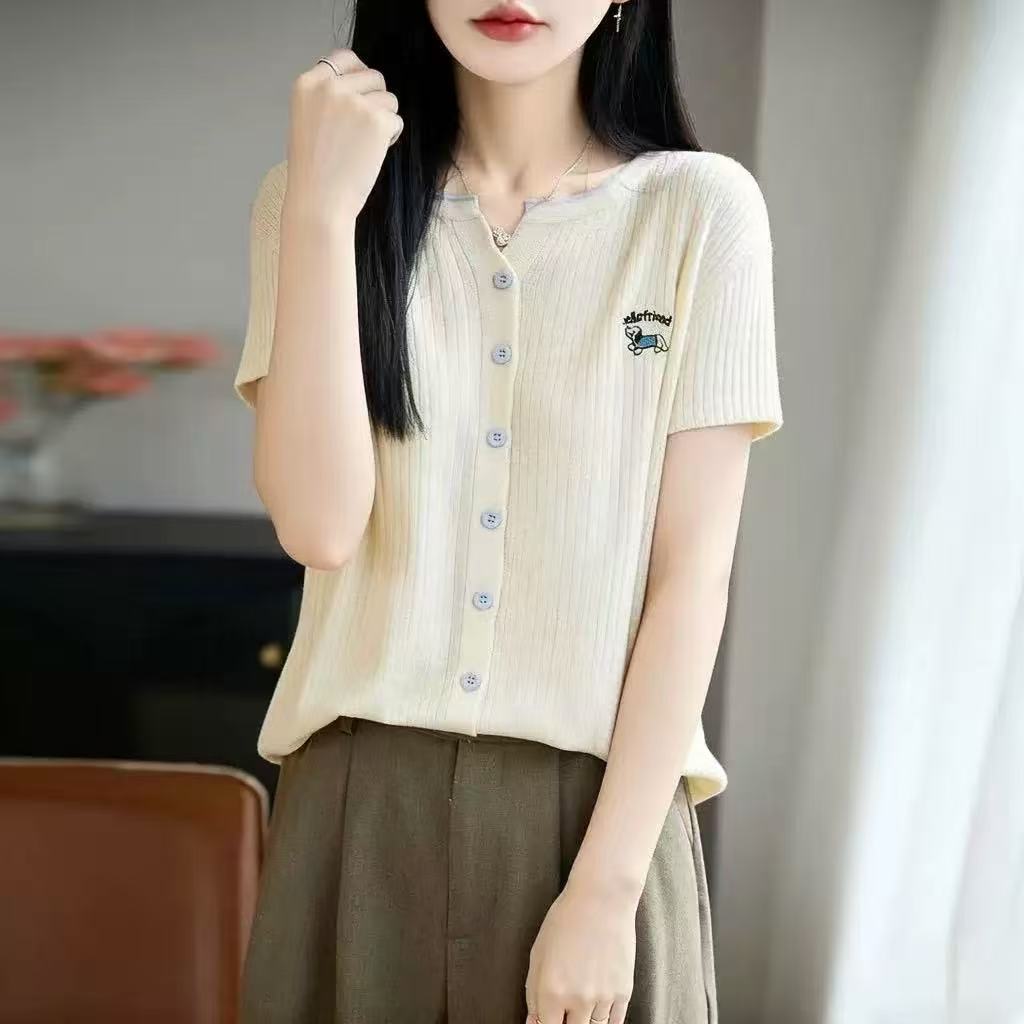홀로우 아웃 얇은 스타일 POLO 칼라 니트 스웨터 니트 반팔 여성 의류 2026 새로운 여름 몸매 가꾸기 폴로 칼라 쇼트 스타일 맨위