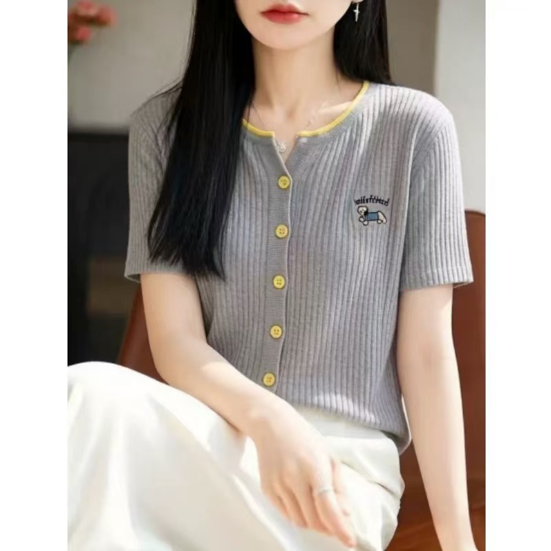 한 부서 회색 폴로 칼라 polo 니트 반팔 티셔츠 여성 여름 디자인 센스 작은 대중 품격 쇼트 스타일 긍정적 인 어깨 작은 맨위