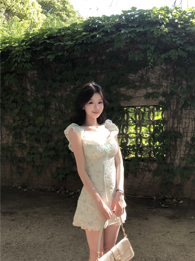 은하계 깨진 훈련 레이스 조각 핫걸 드레스 홀로우 아웃 디자인 센스 치마 아이들 여름 명문 여성 순수한 욕망 바람