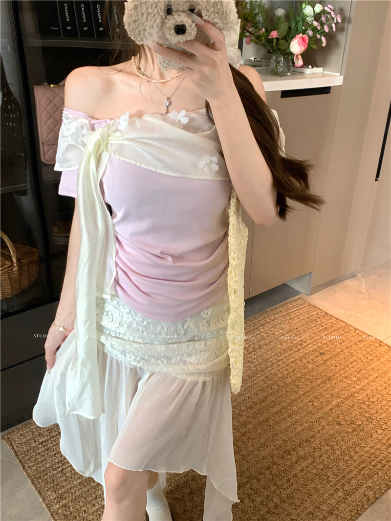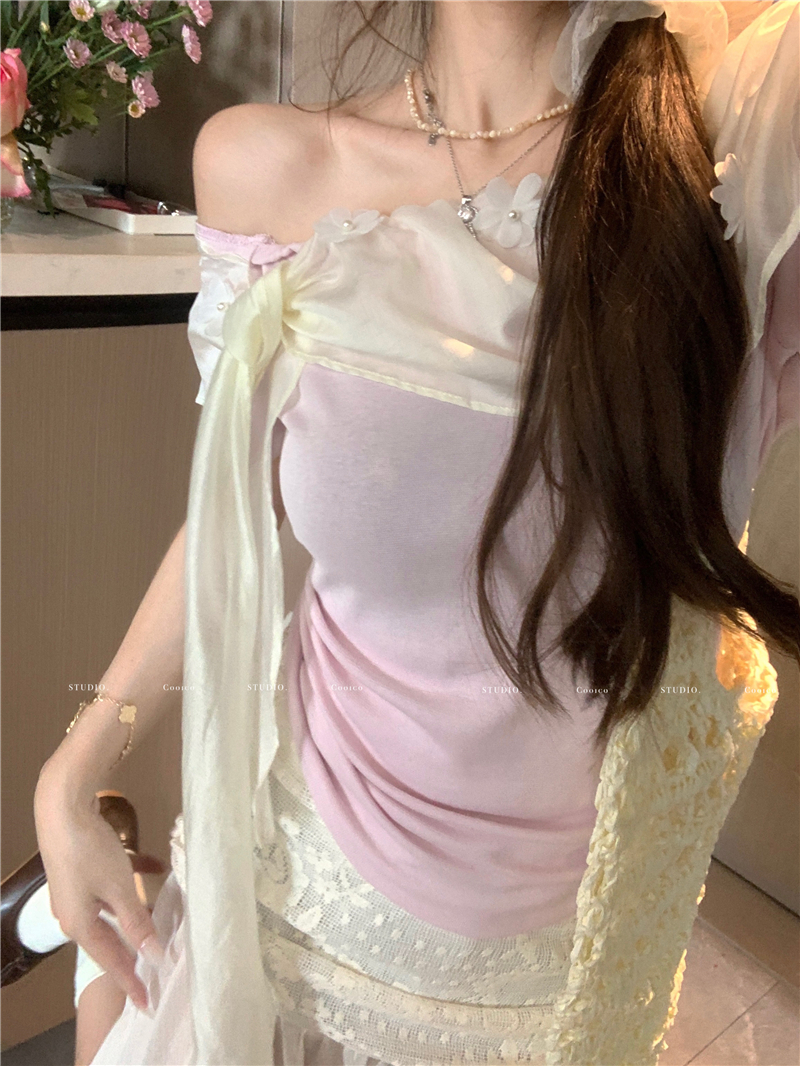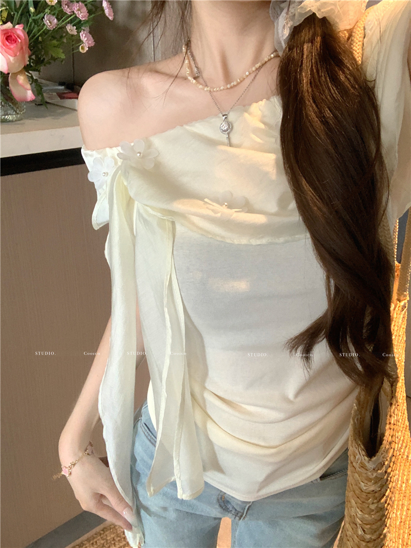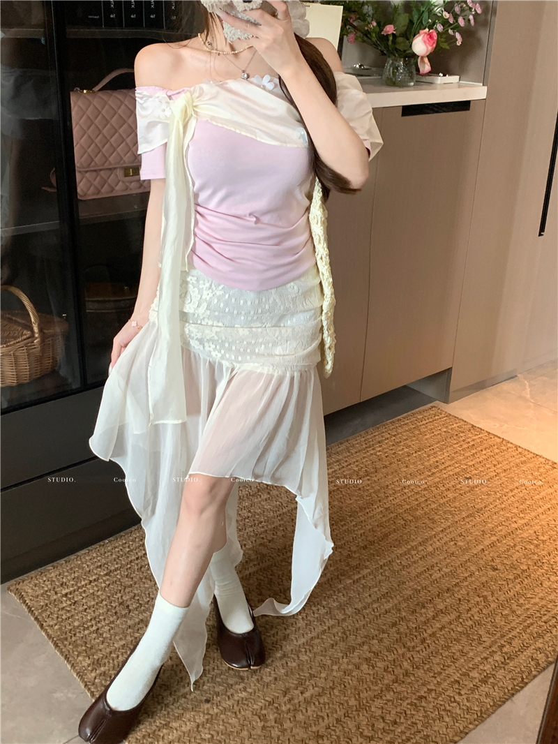 하트 비트 ~ 중 offer 하얀 달빛 동반자 나만의 것을 가져와 라. 잃어버린 초점 센스 망사 비스듬한 어깨 몸매 가꾸기 니트 작은 셔츠