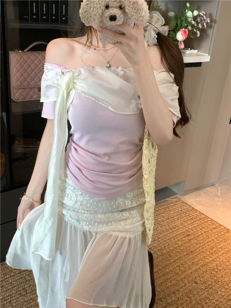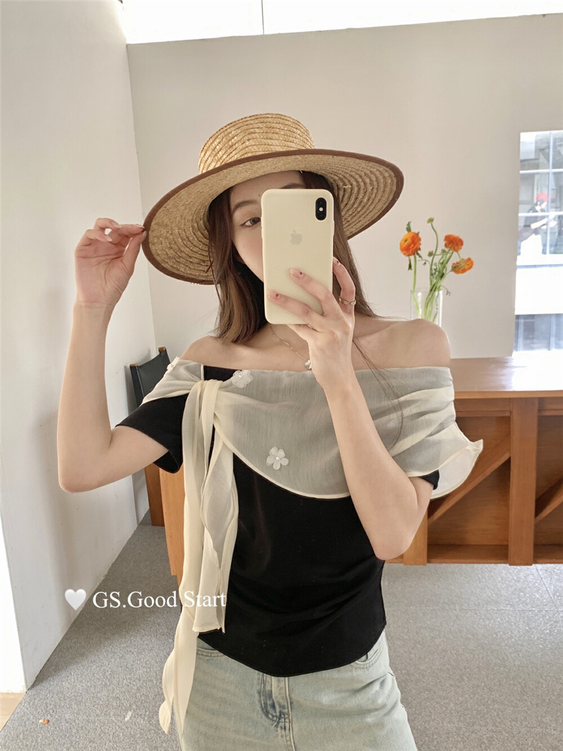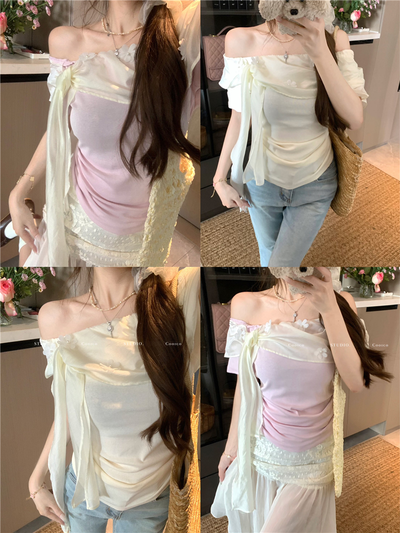 乖離 카드 26 여름 켜기 새로운 우는 소리 우는 소리 2.0 하트 비트 분위기 flower 작은 날다 소매 3 차원 레이스 작은 셔츠