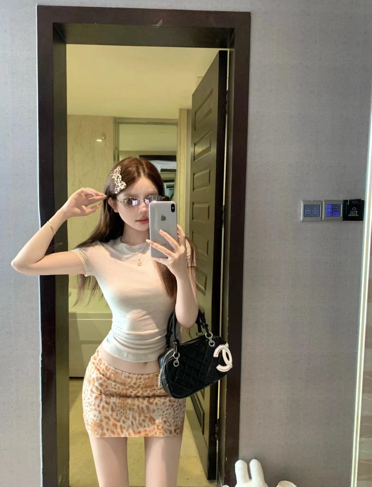 실사 정가 화이트 핫걸 강아지 프린트 비스듬한 어깨 반팔 티셔츠 여성 여름 디자인 센스 몸매 가꾸기 디스플레이 맨위