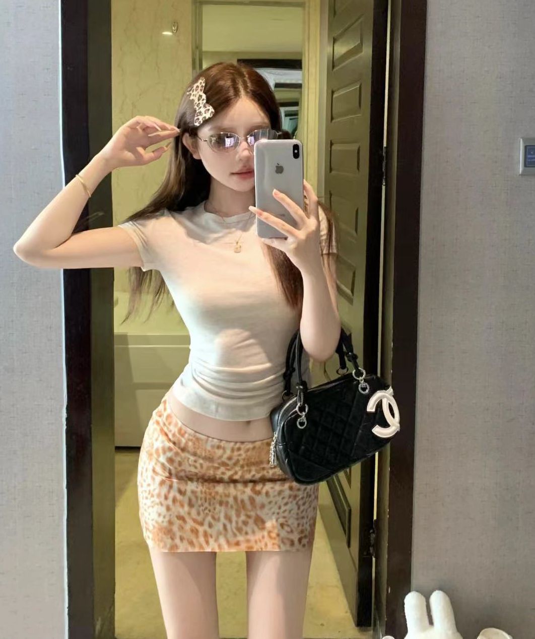 실사 정가 2026 여름 순수한 욕망 다용도 u 칼라 패키지 버클 타이트 반팔 티셔츠 여성 핫걸 몸매 가꾸기 쇼트 스타일 맨위