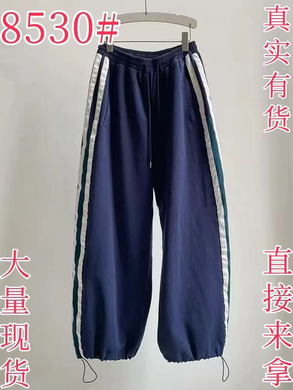 여름 얇고 가벼운 바지 루즈핏 bf 느긋한 바람 하이웨이스트 캐주얼 차가운 센스 파란색 하트 프린트 스트레이트 와이드 레깅스 바지