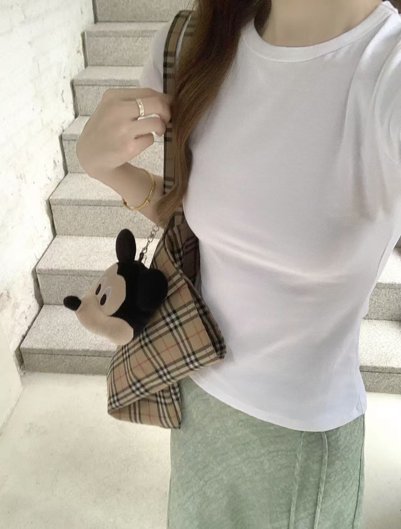 실사 정가 화이트 핫걸 강아지 프린트 비스듬한 어깨 반팔 티셔츠 여성 여름 디자인 센스 몸매 가꾸기 디스플레이 맨위